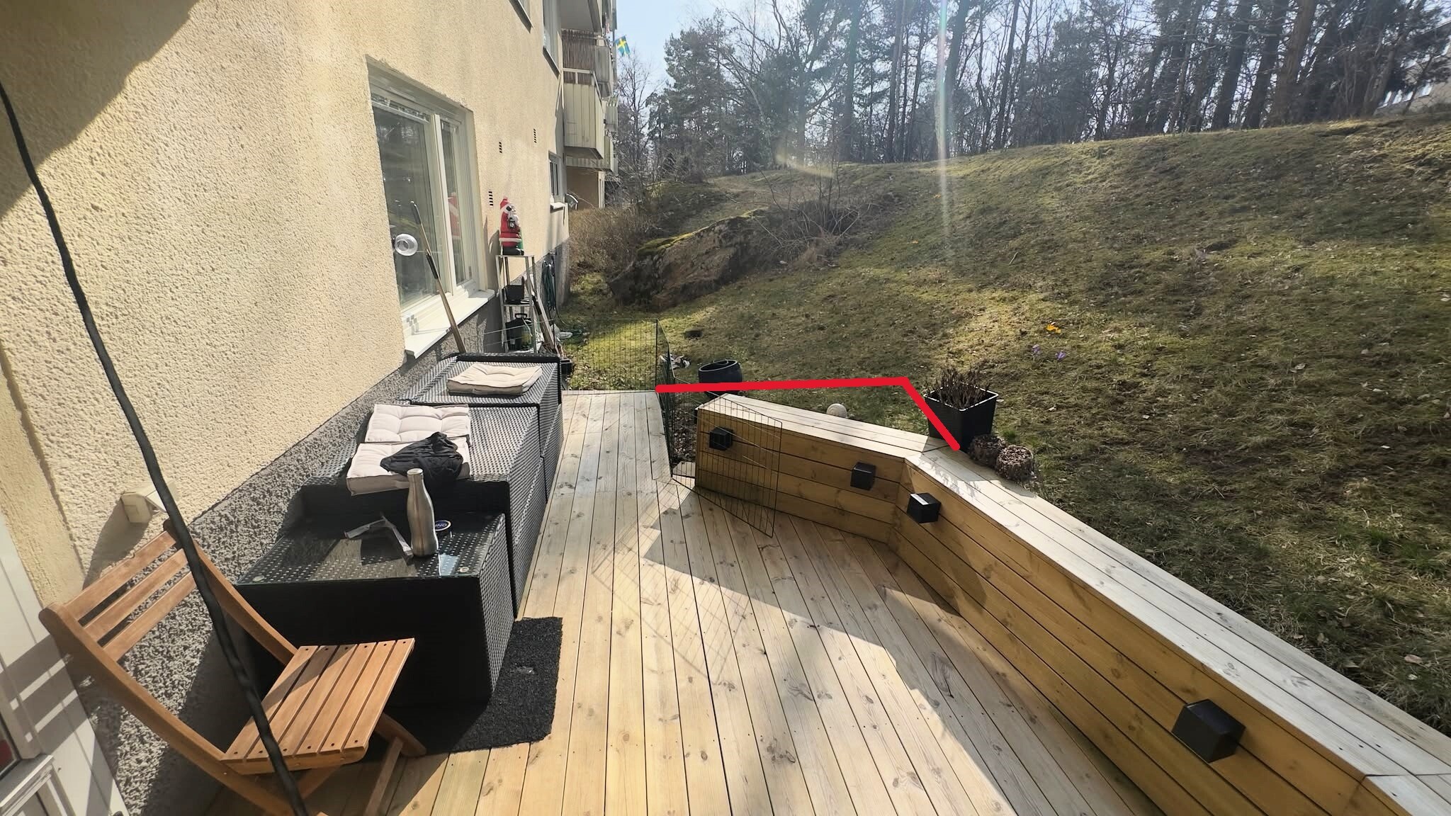 Vi har en liten uteplats/altan byggd sedan sommaren 2023 som jag nu funderar på att eventuellt förlänga/förstora något.