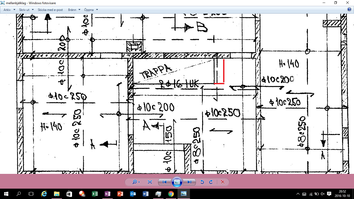 jag behöver hjälp med att tyda en armeringsritning och om nån kan säga ifall det är möjligt att förlänga det befintliga trapphålet utan att sätta in en bärande pelare. Trapphålet är idag 277cm långt och vi vill förlänga det till 300cm för att slippa slå huvudet när man går uppför trappen.