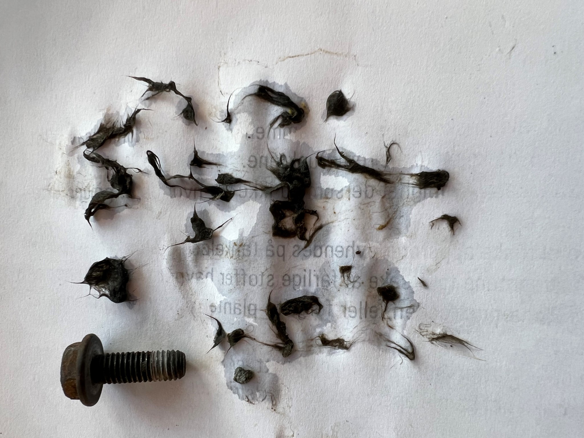 Silarna till mina tappställen sätter igen med något som kan beskrivas som ett mycket fint ludd av långa fibrer ca 10mm men mycket tunna uppskattningsvis någon hundradels mm. Färgen är grå/ svart.Jag har värmt upp det på en folie, och då förkolnar fibrerna och luktar illa. Jag lägger upp tre bilder, på första ser man det som fanns i duschblandaren. Bild 2 närbild där jag försökt dra isär klumparna. Bild tre svävar dom frtt i ett glas vatten, ser nästa ut som repor i glaset.