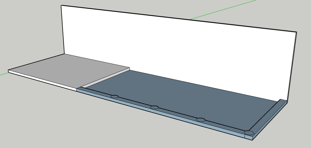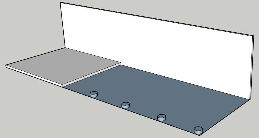 Jag har idag förråd/carport enligt följande. Längst in en 10 cm hög grov betongplatta som det står ett förråd på, därefter en asfalterad yta som är carport. Till höger en 9,6 meter lång betongvägg som ska vara kvar, på vänstersidan fyra betongplintar som nuvarande carport sitter fast i.