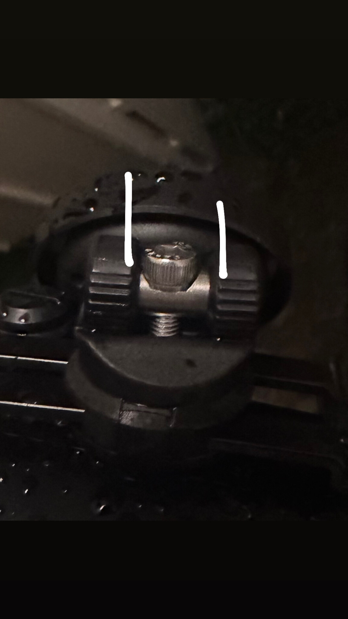 Tänkte mig först något liknande vingmutter. Men huvudet kan inte vara så brett. Det måste rymmas innanför de vita markeringarna jag gjort på bild ett.