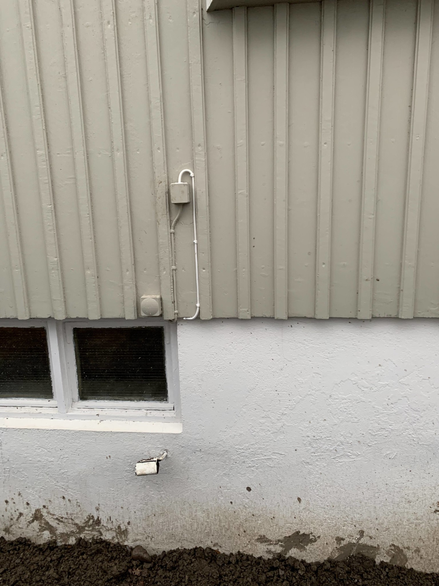 Skaffa ett uttag med två ingångar underifrån,bra ur vatteninträngningssynpunkt också. Klamra kablarna bredvid varandra, jag skulle inte röra den inmålade till vänster utan lägga den "nya" vita bredvid.