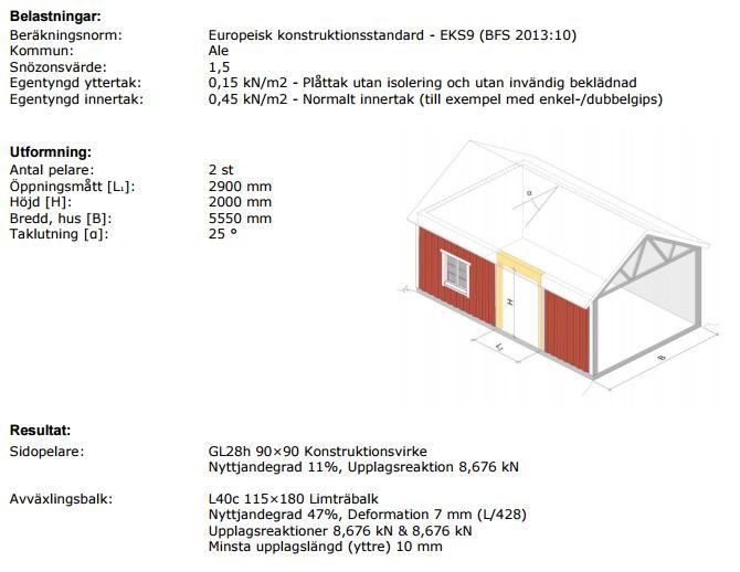 Planerar en 2,9 meter lång öppning i bärande yttervägg. Enligt beräkningar (se nedan) funkar det i detta fall med en limträbalk med dimensionerna 115x180. Men jag vill helst ha lägre höjd på balken än så för att få plats med skjutdörrar. Så gärna en balk med maxhöjd 140mm. Vad tror ni om HEB/100-140?