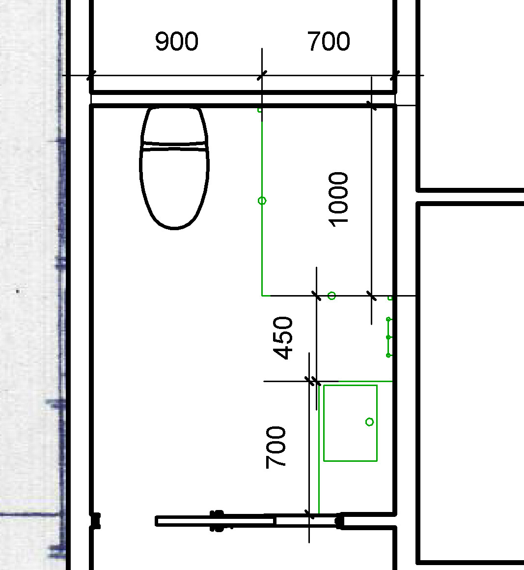 80 cm bredd räcker till en toalett, då går det fortfarande bra att komma åt och städa sidorna. En dusch som är 80x100 tycker jag känns rymlig, med 70 får man nog tänka mer på hur man står.