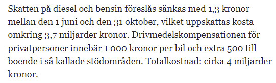 Från dagens presskonferens enligt DN, https://www.dn.se/ekonomi/uppgifter-regeringsstod-for-drivmedel/F fribygg skrev: