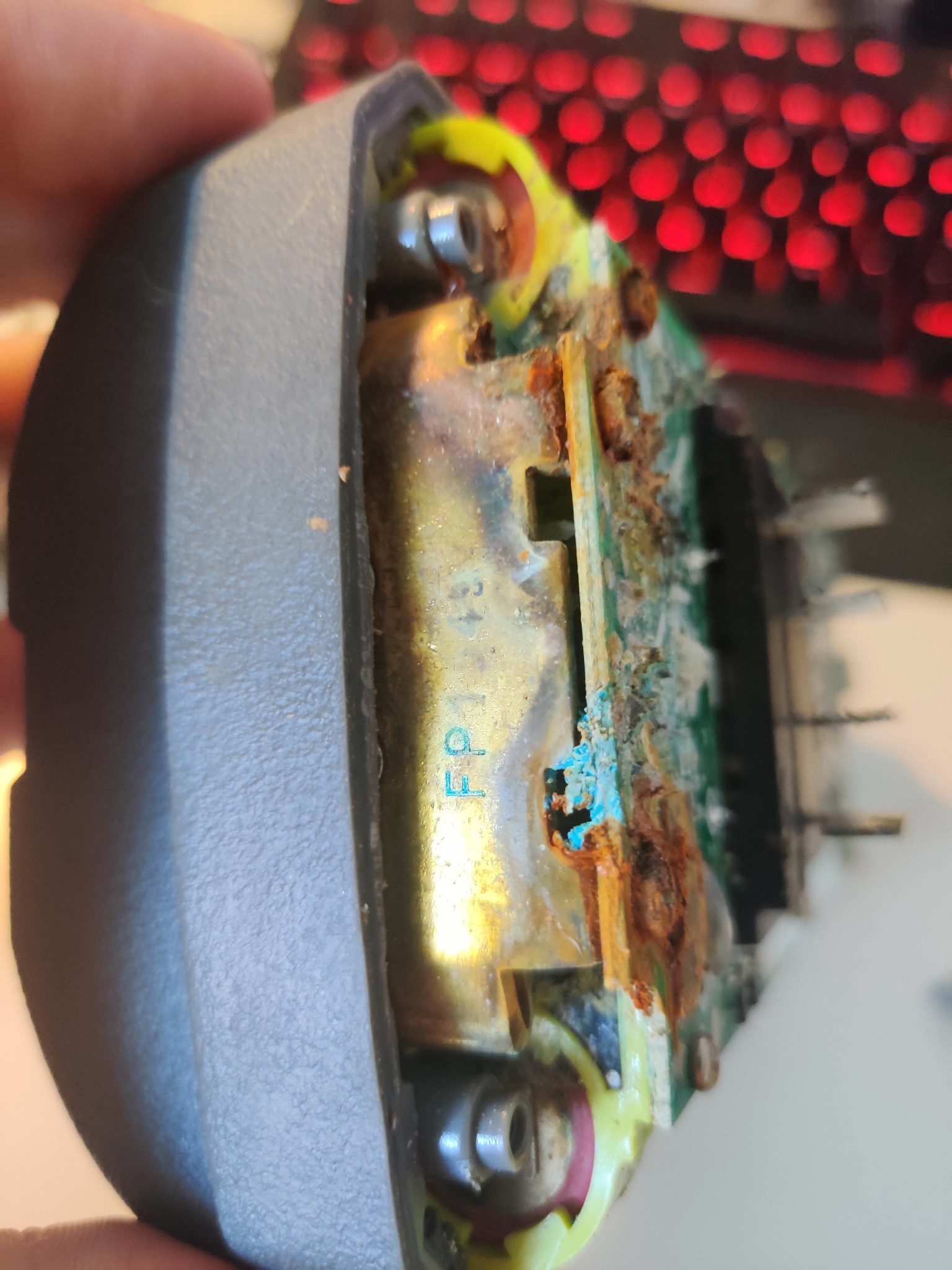 Kanske räcker att rengöra.....vad är det för nåt som är skruvat i kretskortet bak där?