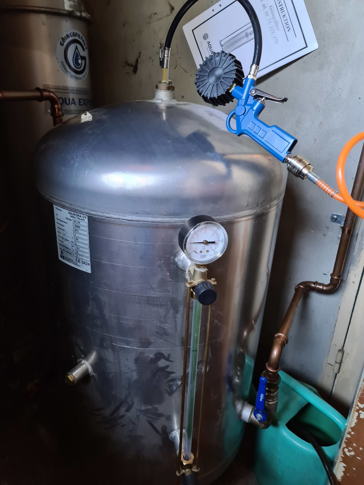 Nu funkar det bra? Jag såg 1,8-2 bar verkar ok på hydropress med gummiblåsa. Det måste vara lägre än tillslagstrycket som varierar på olika anläggningar.