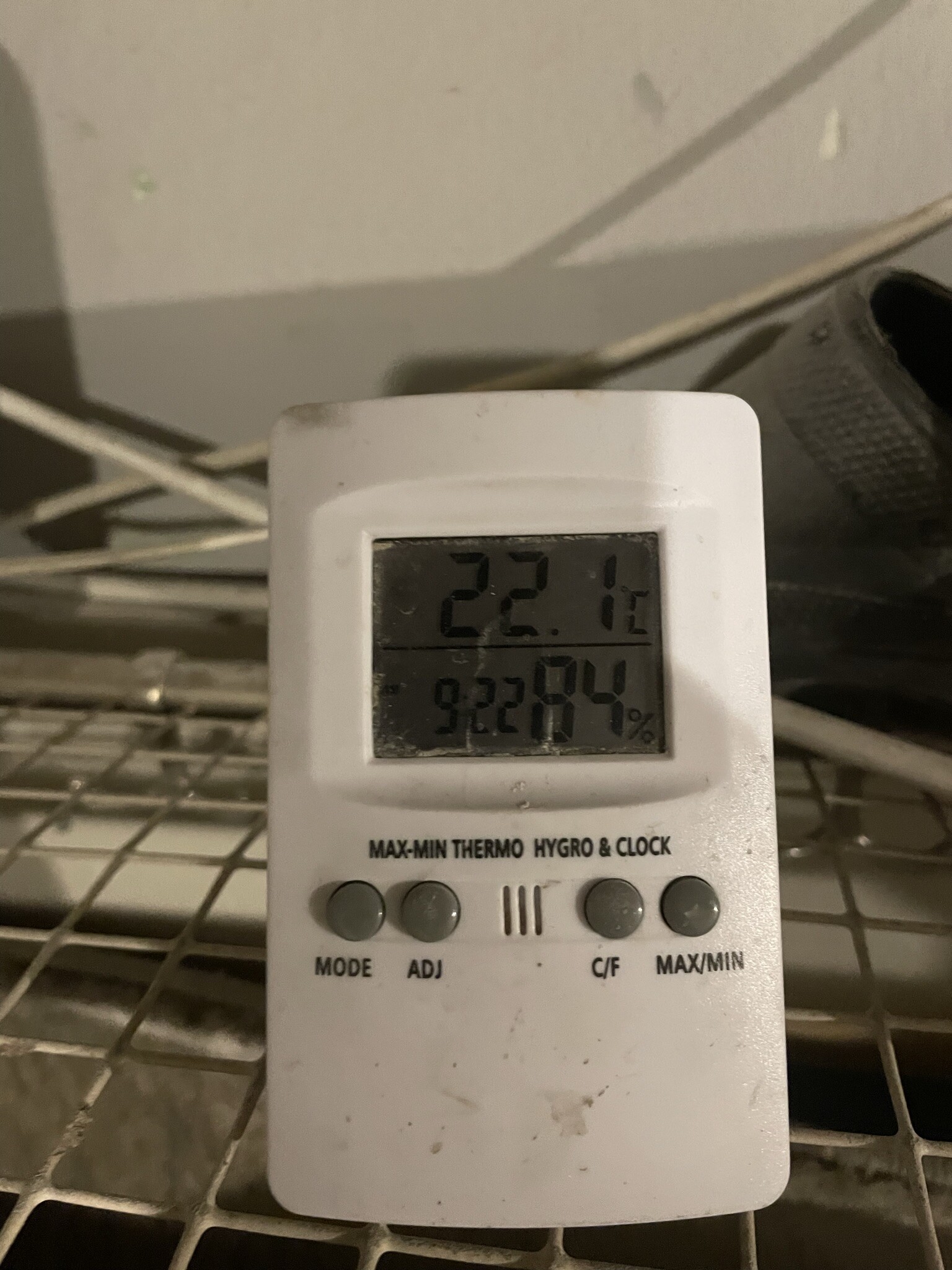 Morgonen efter var luftfuktigheten väldigt låg men tempen var högre. Vanligtvis är det 16-17 grader i källaren så här års