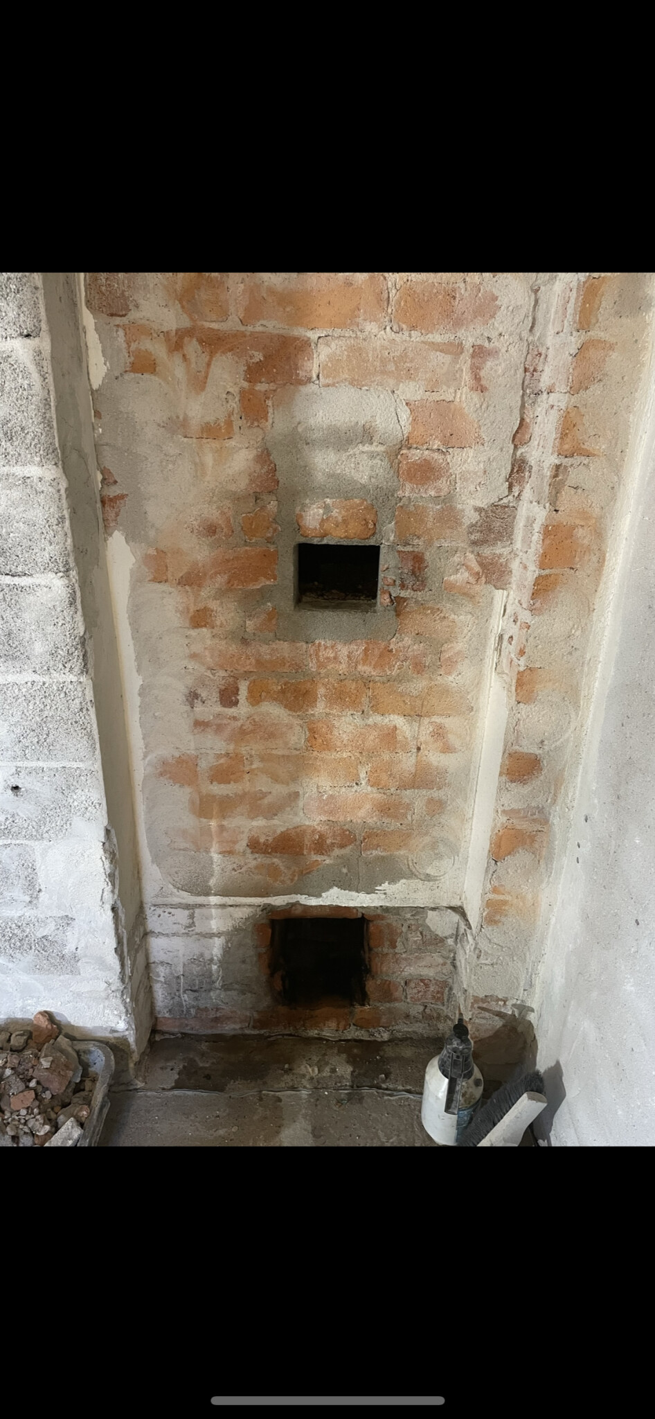 Efter ett tag så hade jag även slipat bort all gamma puts. Jag valde att göra det för att det gick typ snabbare än att slipa bort lite. Dessutom så hade den släppt på vissa ställen och jag visste inte vilken typ av puts det var => kalkbruk => dyrare och svårare att puts med.