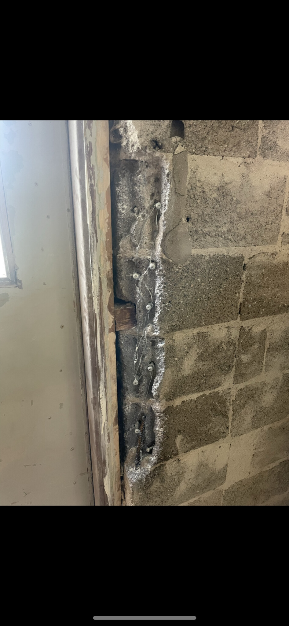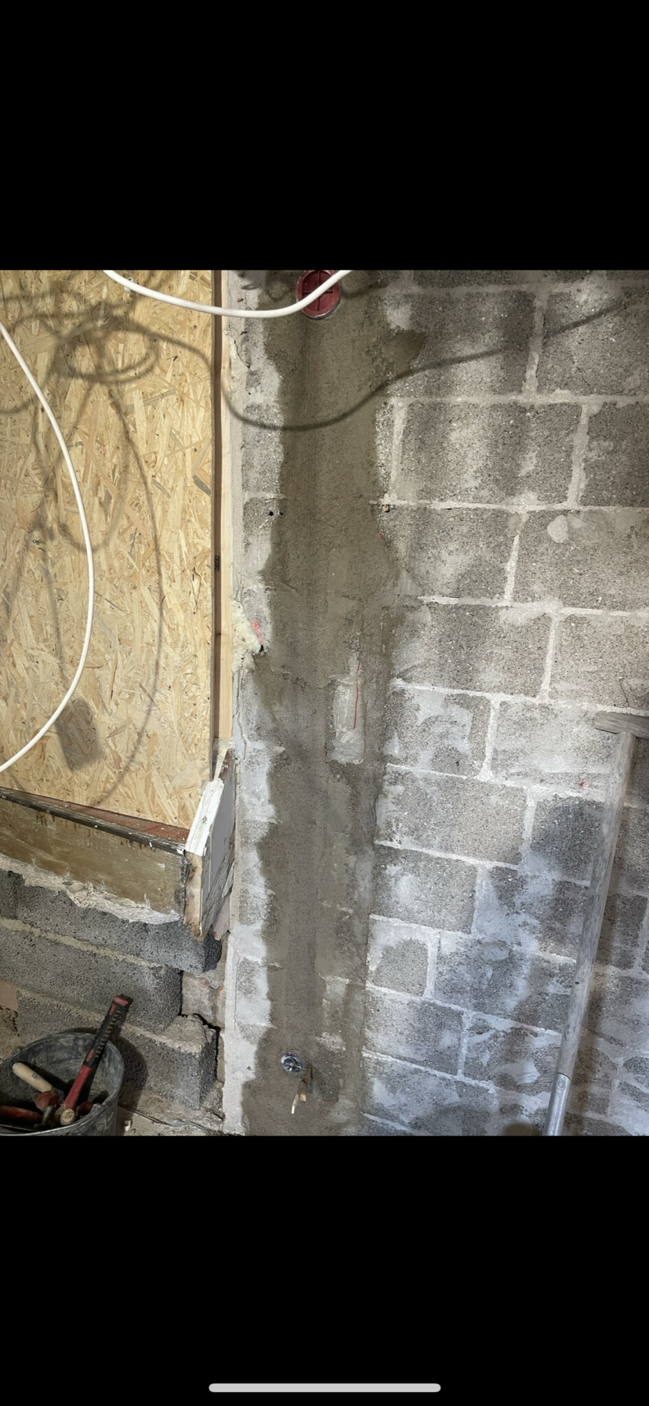 Efter att betongen började torka så lagade jag större hål och sprickor. Bland annat var det sprickor i hålstensväggen under de flesta fönstrena. Där sågade jag upp med sten klinga och gjöt in armeringsjärn med reperationsbetong