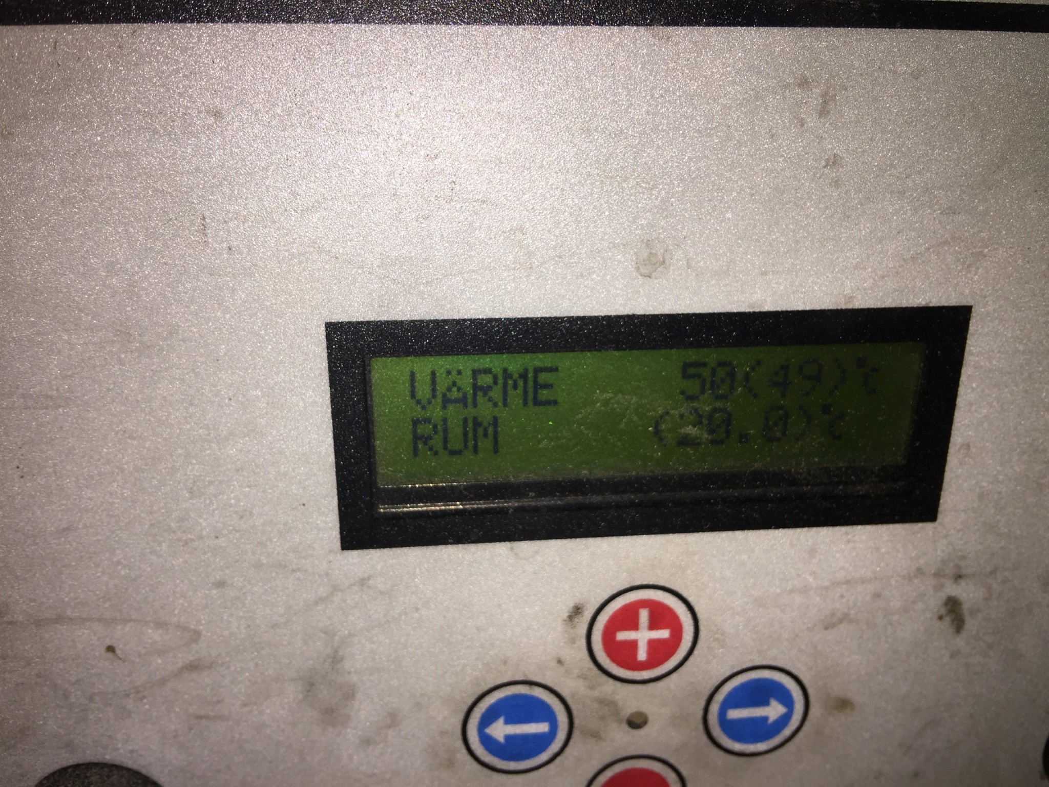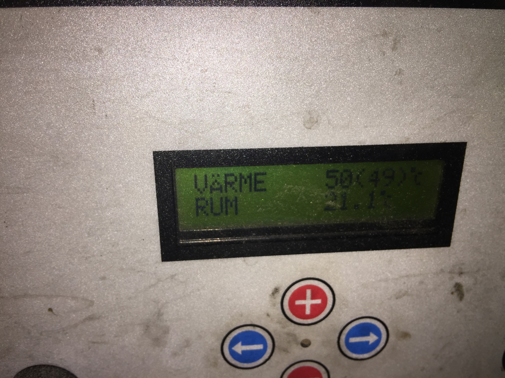 Den här bilden visar att den vill ge en framledningstemperatur på 49 grader och att rumsgivaren för tillfället visar att rummet är 21,1 grader.