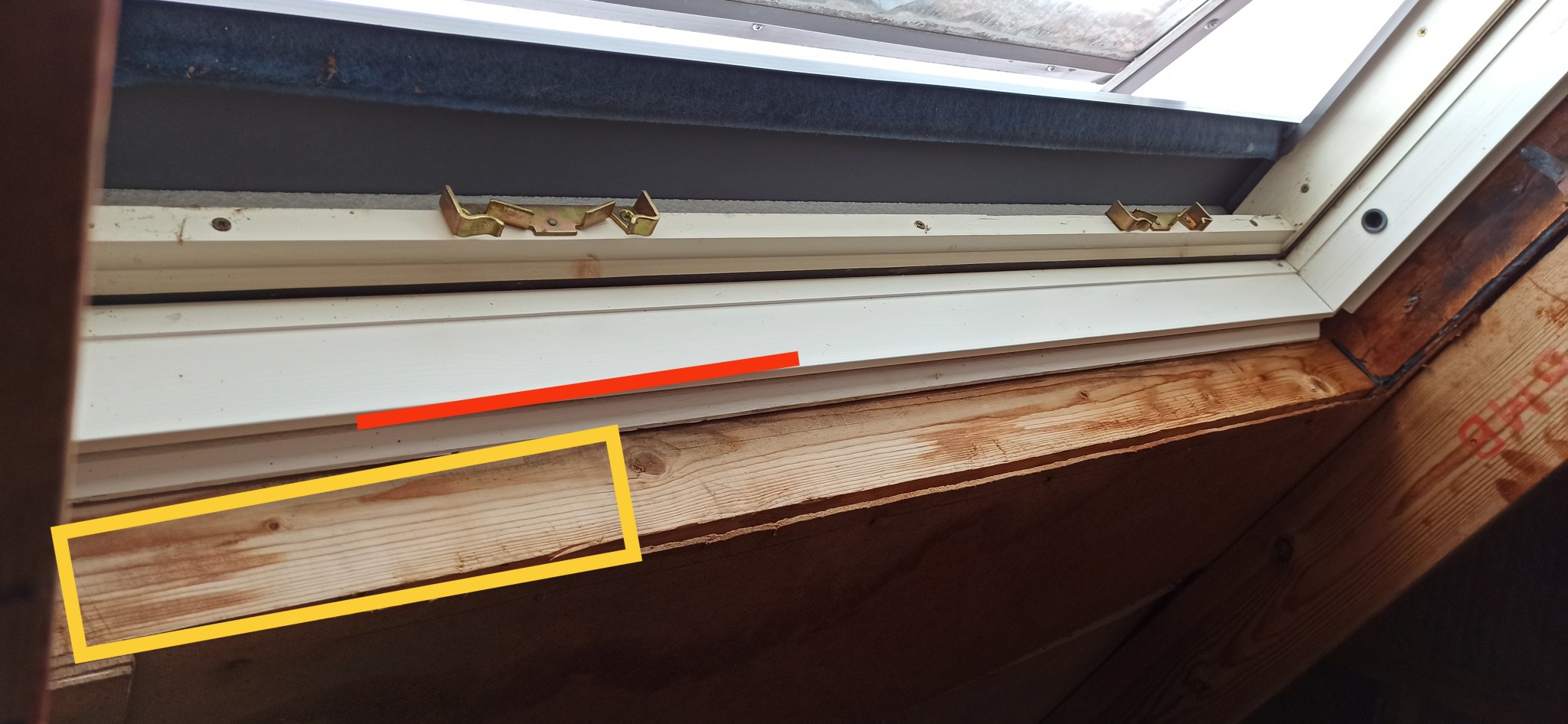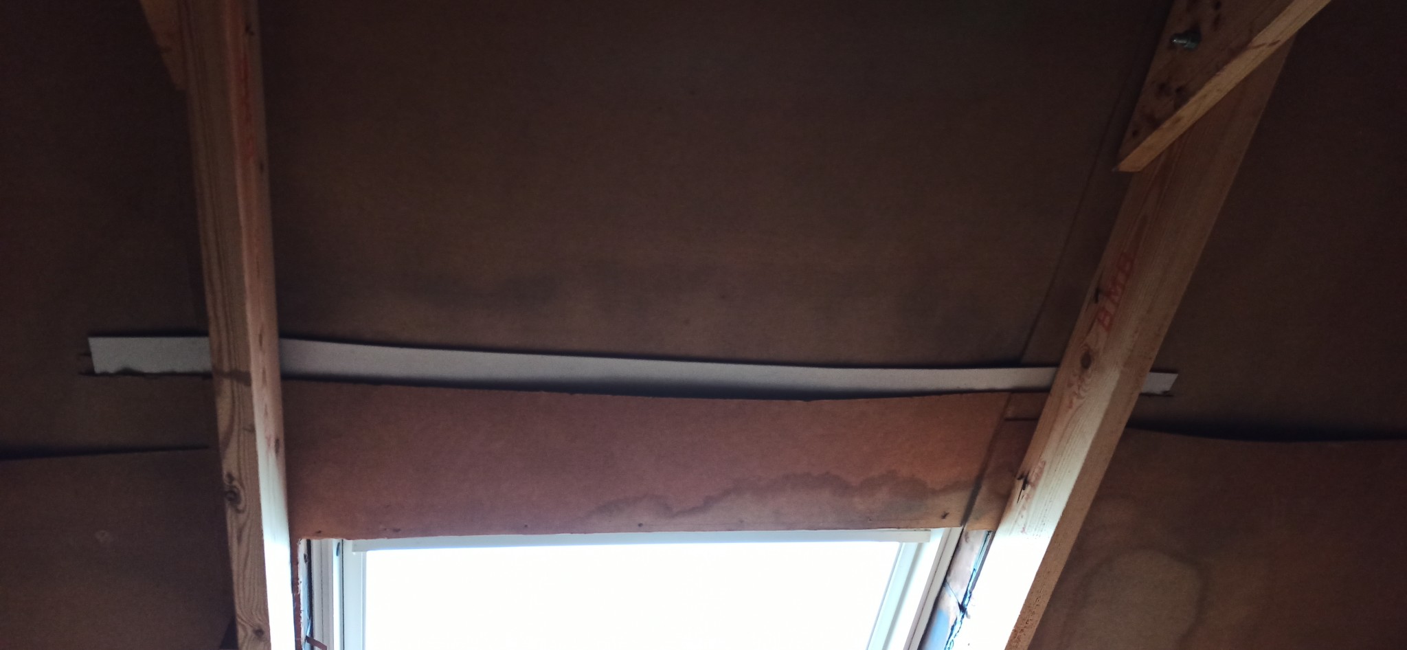 Så vattnet kan ju även ha kommit in längre uppifrån med och sedan samlats i ovankant av takfönstert, men taket ser bra ut och har nyligen bytt ut 4 takpannor i samband med takbehandling