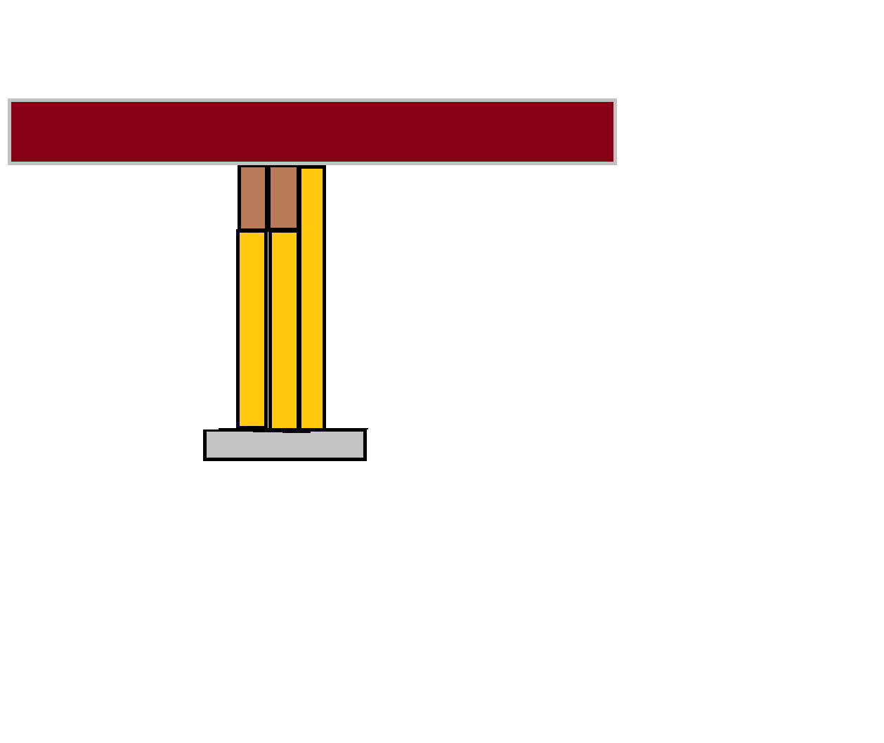 Lägg in plattor, pressa upp bärlinan lite med en domkraft och sen måtta och passa in stolparna . Släpp på domkraften så sitter det.