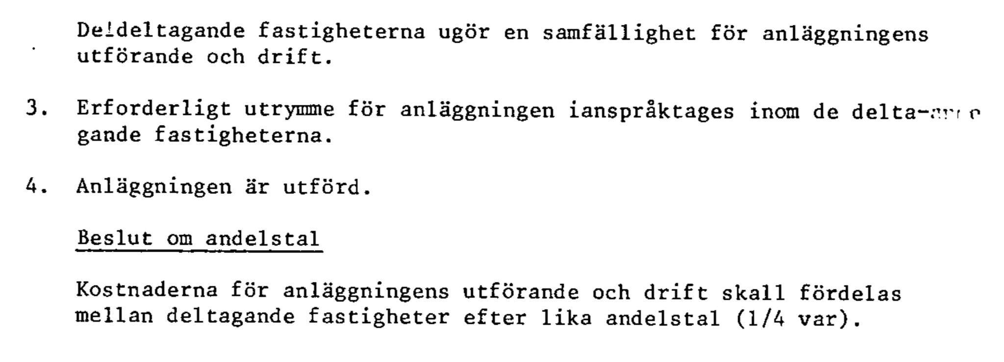 Det är ett utdrag ur det s. k. anläggningsbeslutet, det myndighetsbeslut enligt anläggningslagen som Lantmäteriet fattade vid förrättningen. Det definierar gemensamhetsanläggningarna.G GG13 skrev: