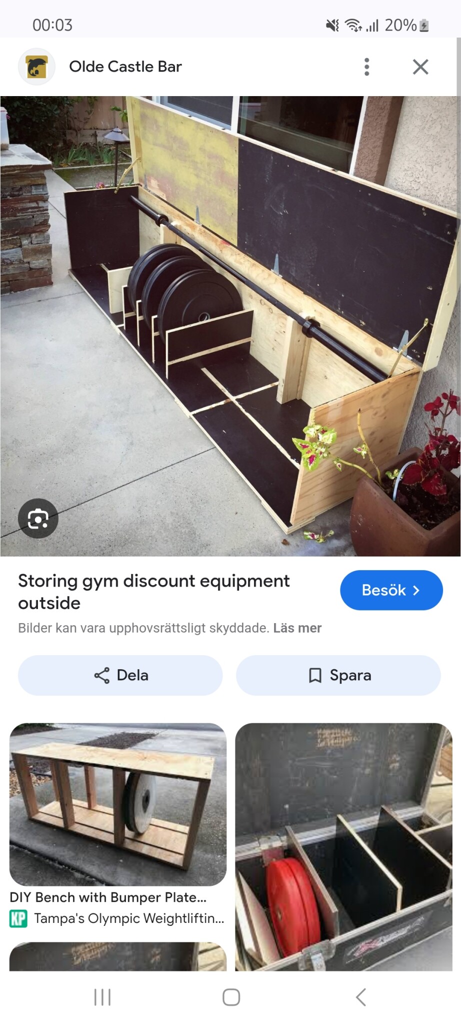Jag har blivit med skivstång. Ingen märkvärdig sak men den kräver förvaring utomhus eftersom insidan inte har plats. Där kommer den samsas med några kettlebells och viktskivorna.