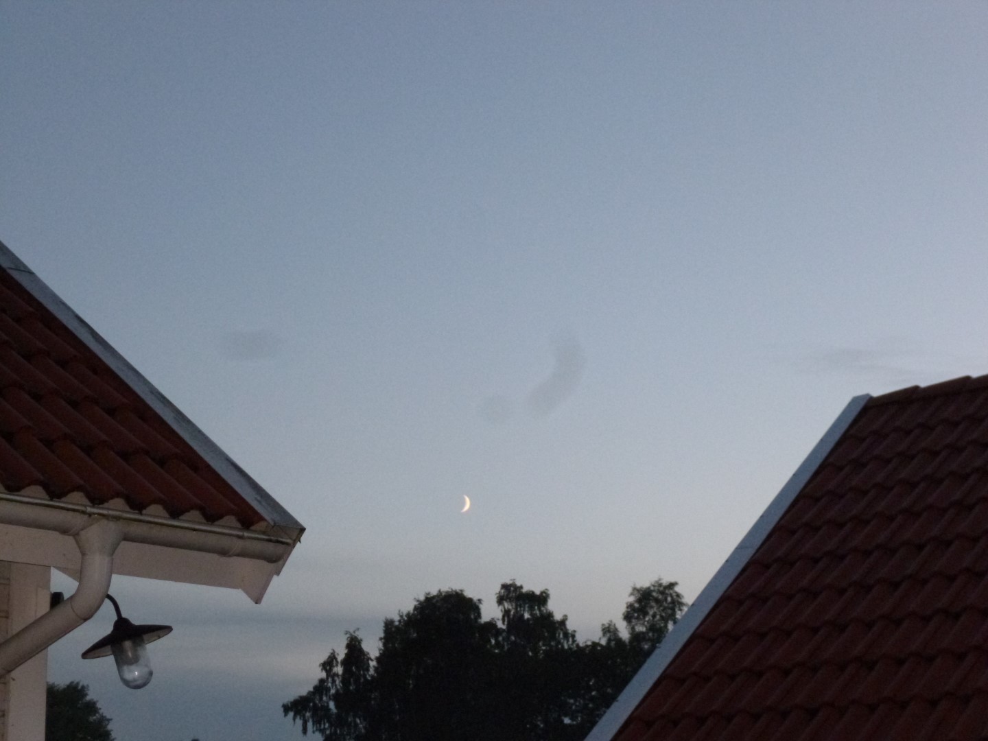 Och ut mot väster steg vår närmaste himlakropp upp, nymånen.