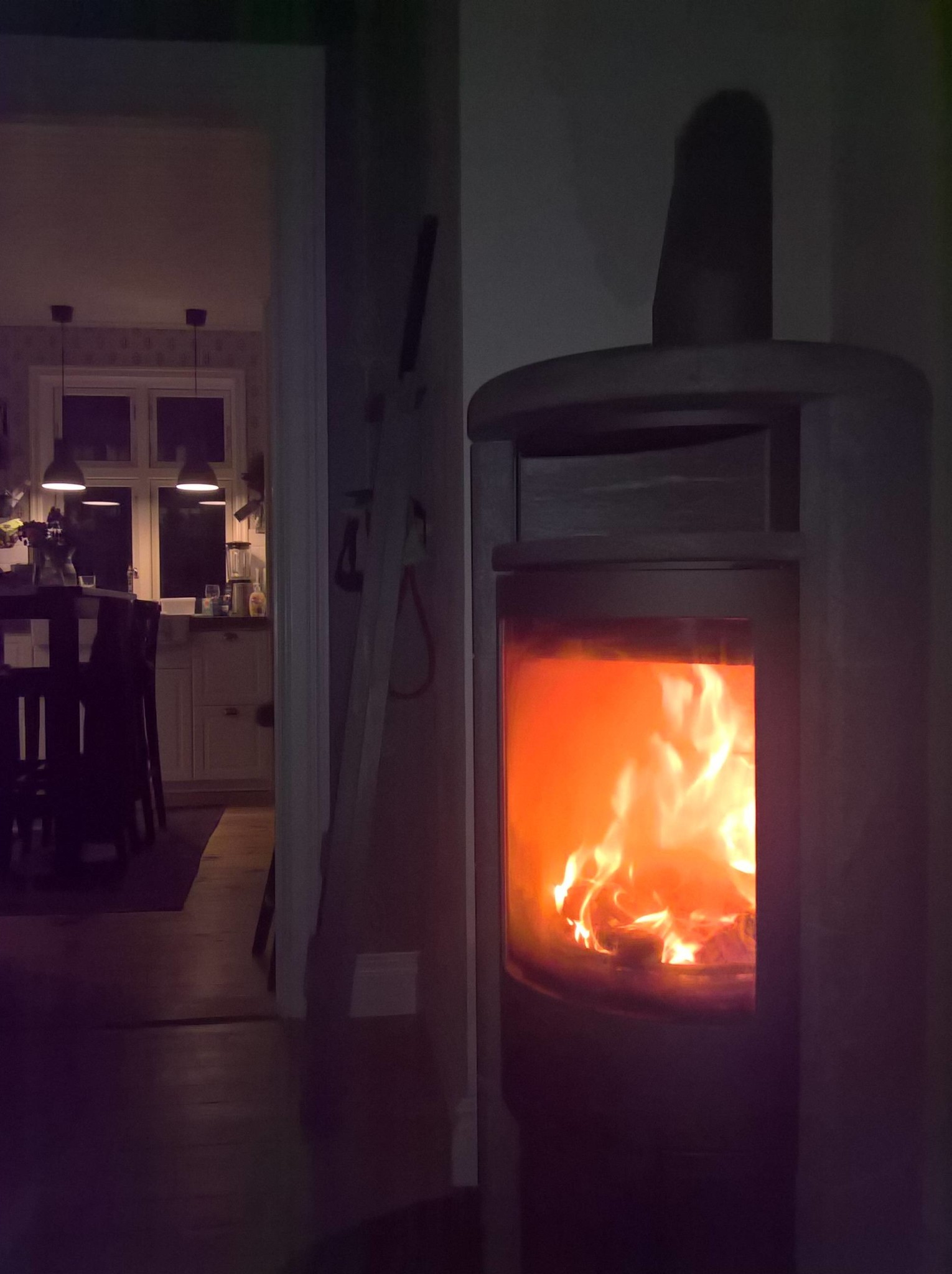 Vi älskar hösten, vackert utomhus och så kan man börja elda, lite, med öppna fönster.