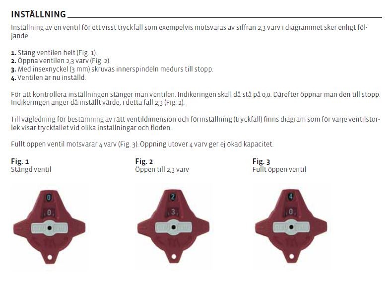 Kolla vad den röda rattens ”fönster” har för siffror notera dessa. Stäng sedan tills du får 0 0 då är ventilen stängd. När du är klar med det du ska göra så vrider du tillbaka till ovan noterade värden och sedan låser med insexnyckeln igen