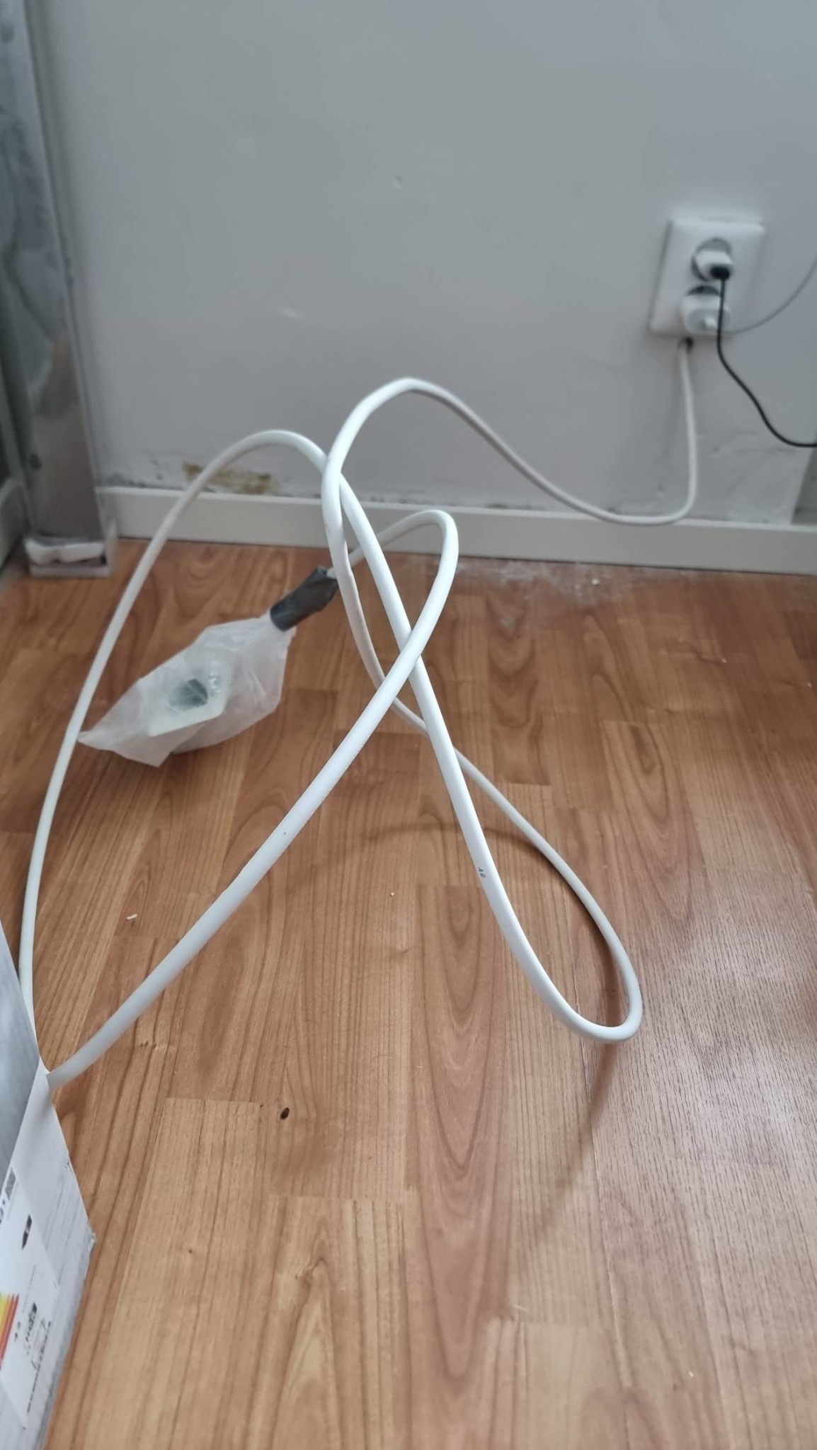 Just nu är eluttaget inlindat i en plastpåse som ni ser, det kanske också är dumt och bör åtgärdas snarast pga risker?
