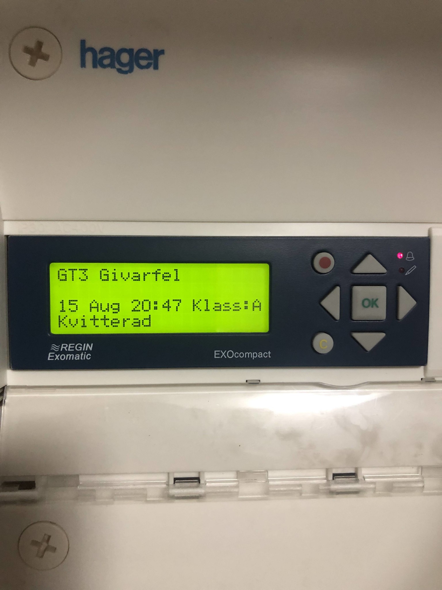 Tog en bild när jag kvitterade en felkod, så ser den ut.