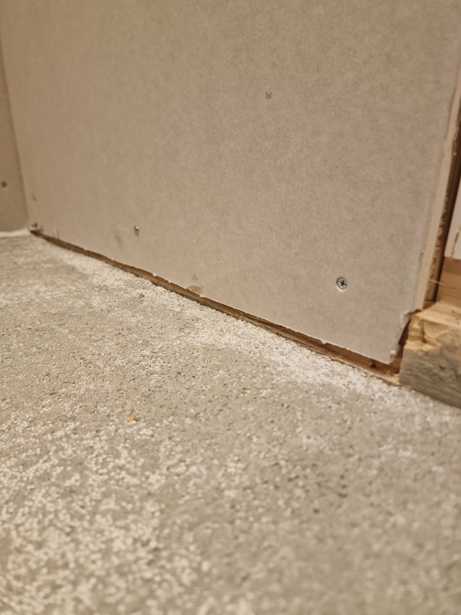 Men hur som så kan du skruva reglar på väggen och haka ut en bräda så du får rätt höj och dra med den. Golvet ska ju flytas så en skillnad på 1cm är inget att bry sig om, tycker jag.