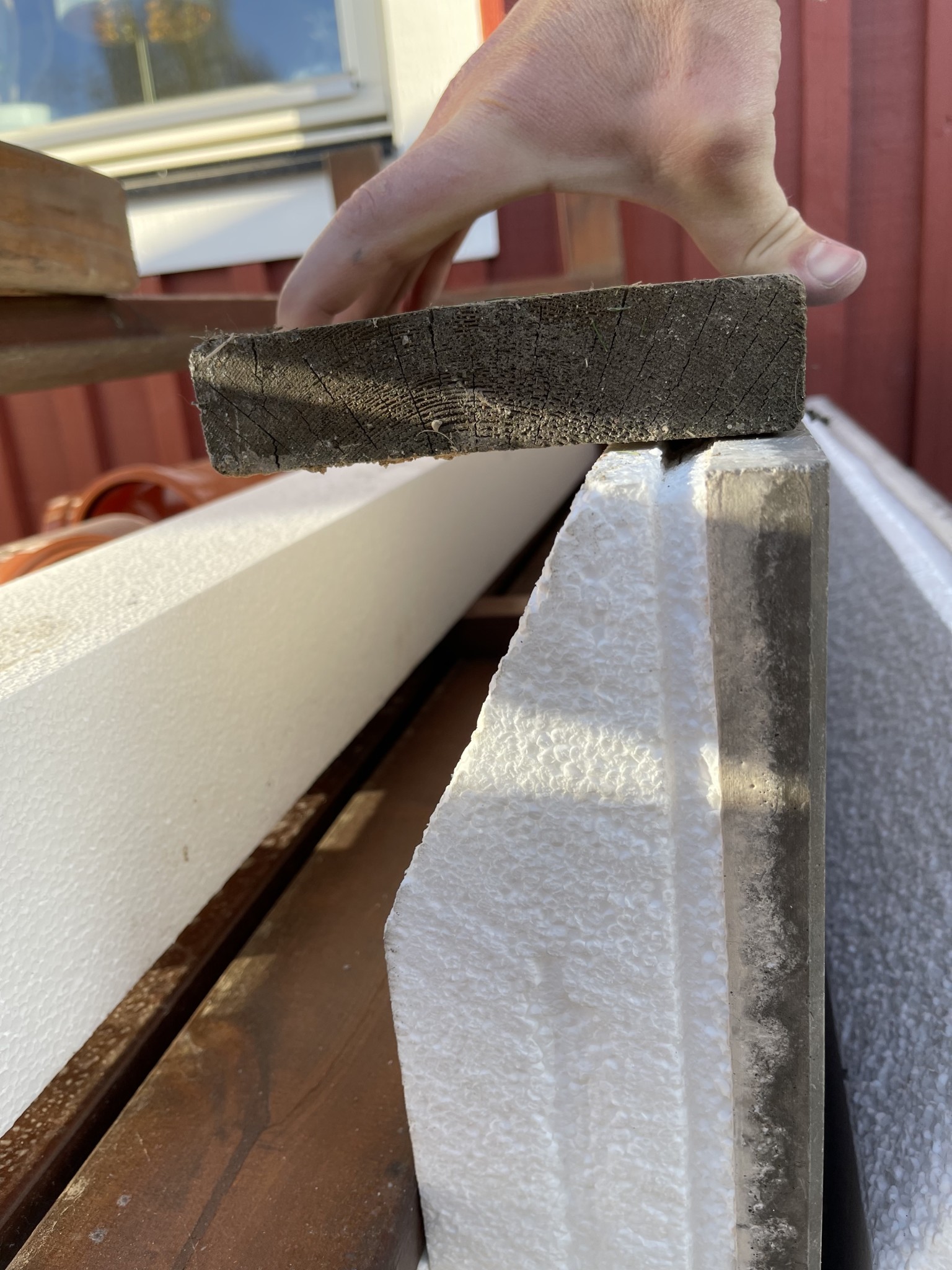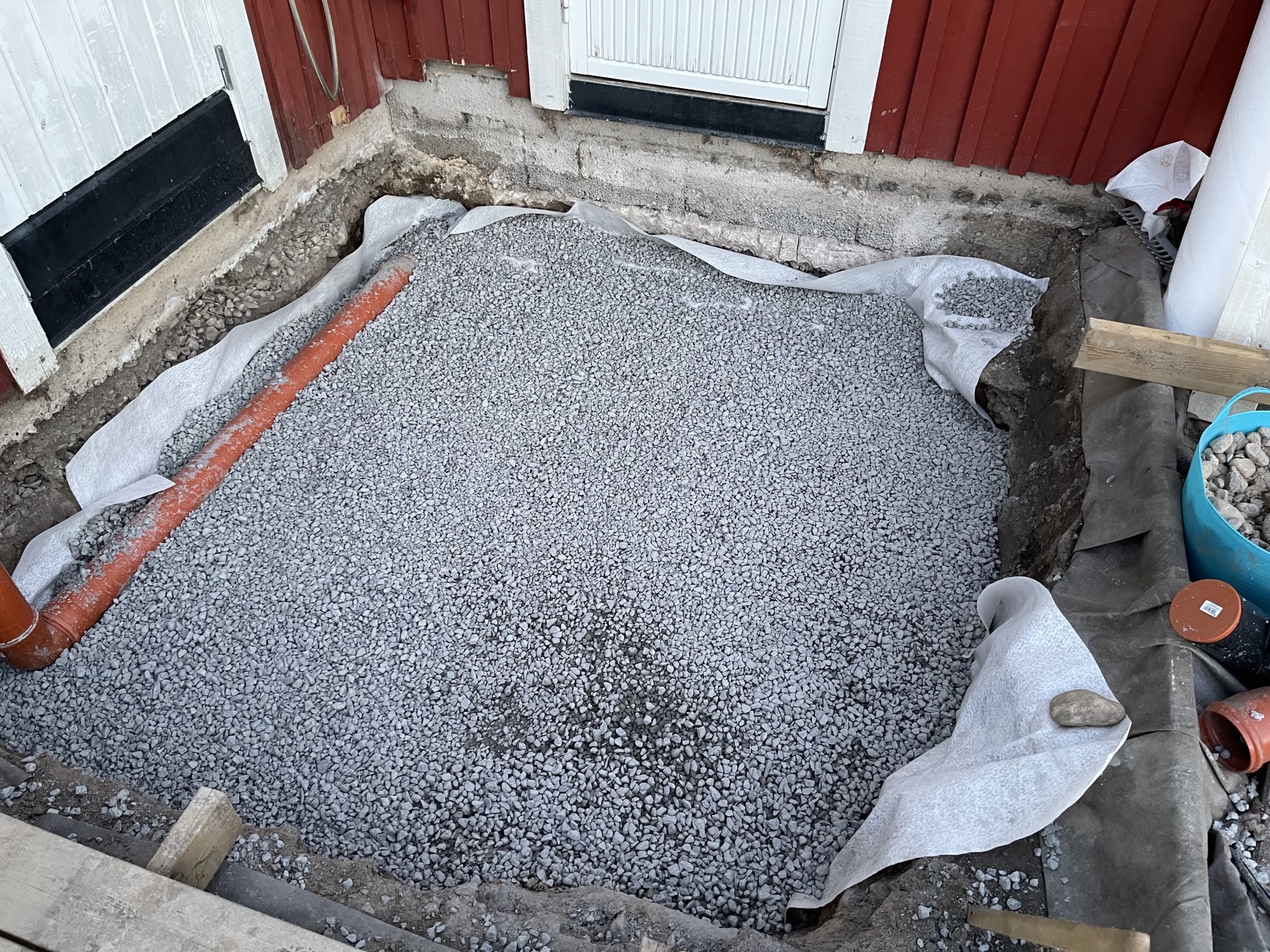 Jag ska göra en mindre utbyggnad för att koppla samman förråd med hus i ett kedjehus. Gör i samband med detta min första egna platta.