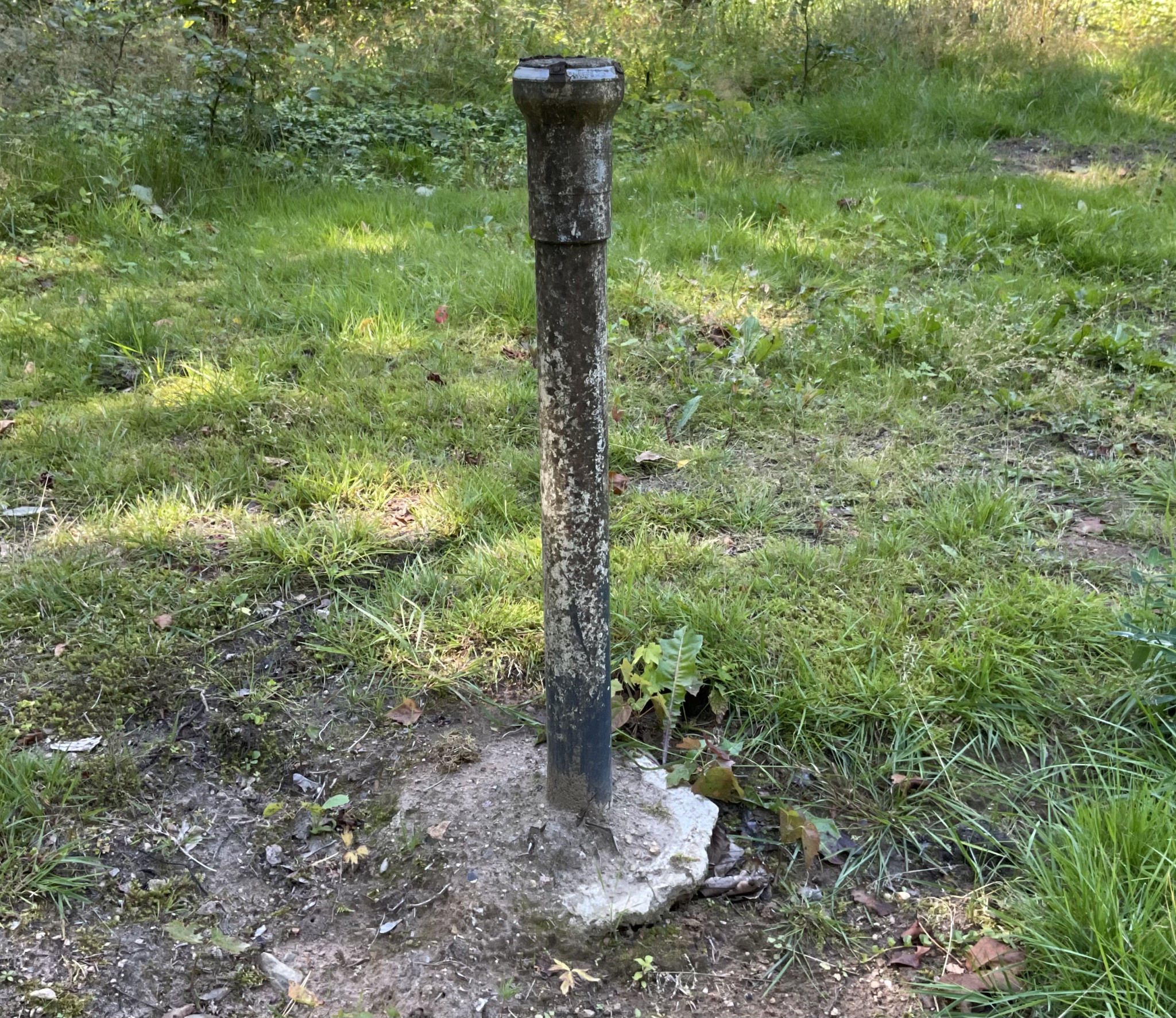 Först trodde jag att det möjligen var en gammal oljetank men det verkar inte rimligt då när jag grävde runt och ned röret fann jag en stor sten (minst 1 meter i diameter). Kan det vara ett tilltäppt borrhål av någon form?