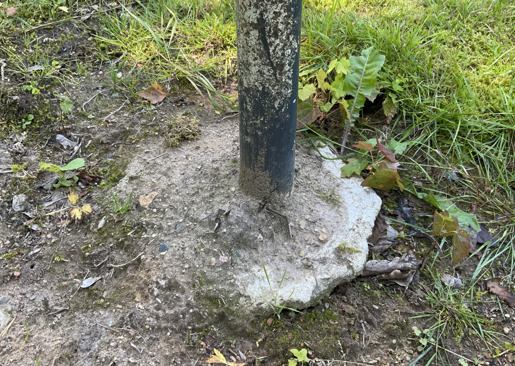 Ca 6 meter från husknut har jag detta rör som kommer upp ur marken. Röret är igensatt och går rak ned i en stor sten och där röret går in stenen är betong påfört.