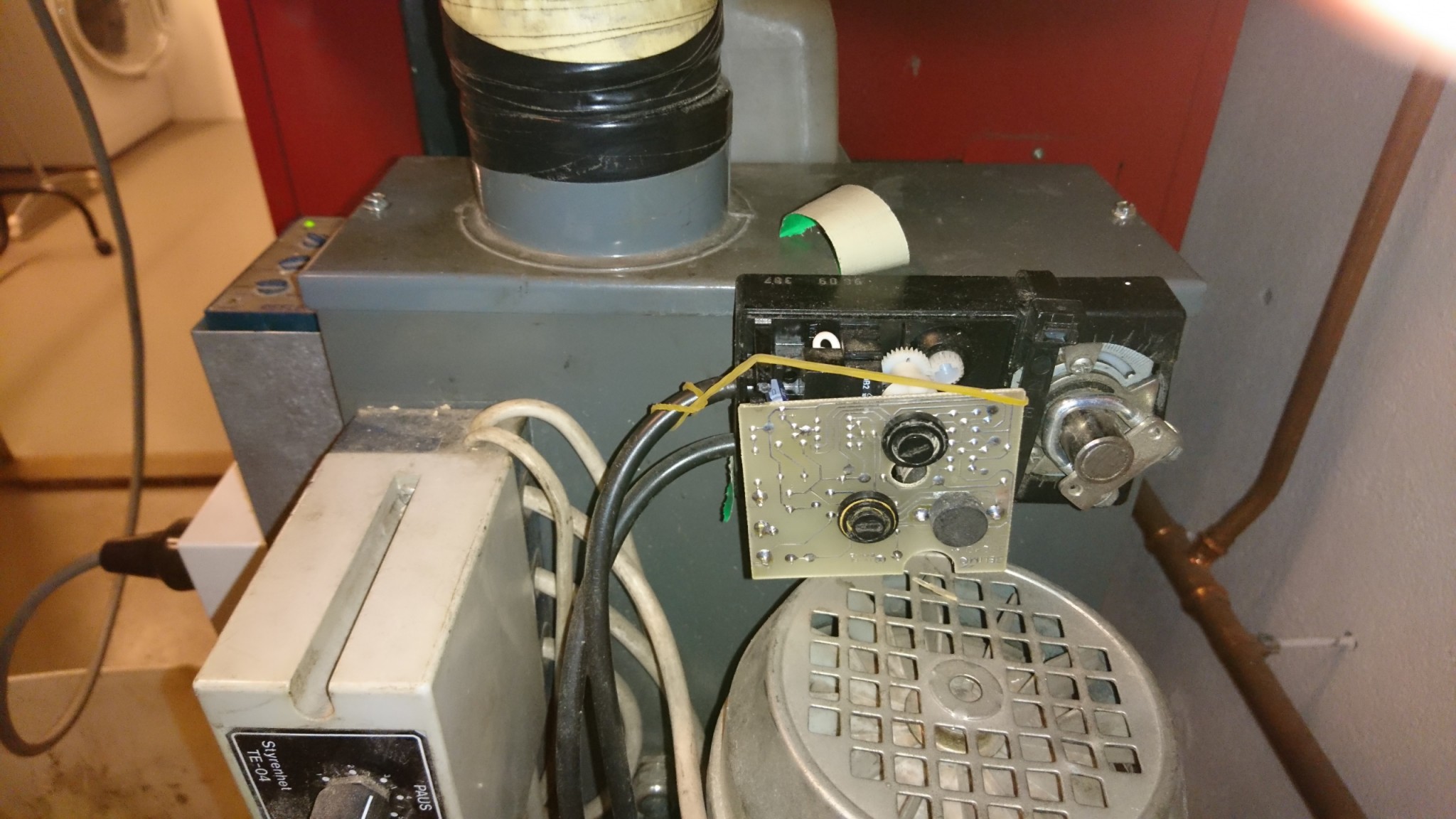 Själva frågan, eftersom spjället inte tycks användas så kanske man kan ta bort spjällmotorn helt? Men skruven då? Styrs den av timern som finns i spjällmotorn? Det går två kablar dit och den ena kan vara utgående till skruven. Tips på lösningar? Byta ut något? Bygga eget? Modernisera? Går det att hitta schema till det här?