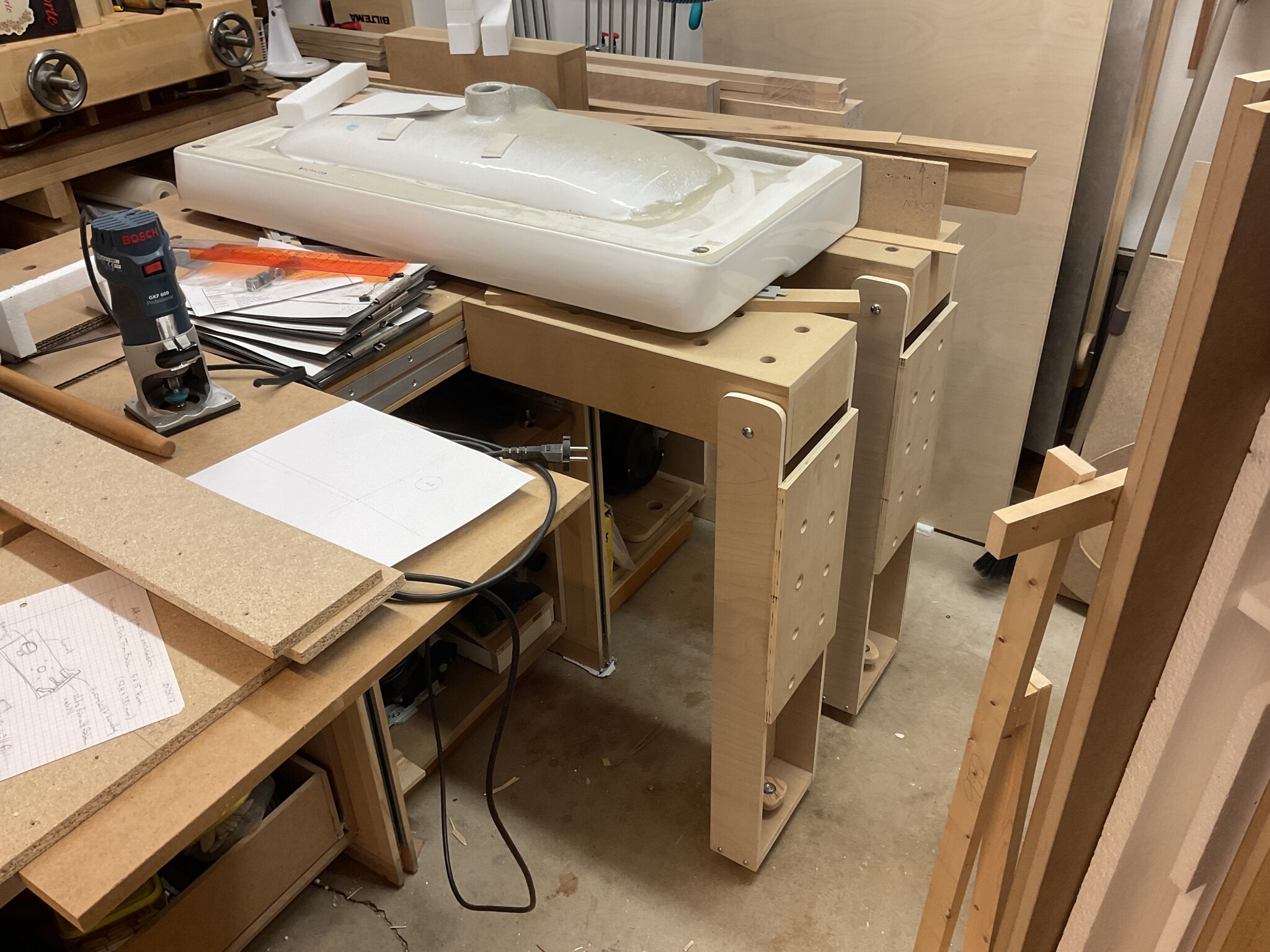 Håller ju på att bygga en badrumskommod åt en trevlig grannfamilj och nu börjar de närma sig ”färdigt badrum” och jag kan äntligen börja bygga på riktigt.