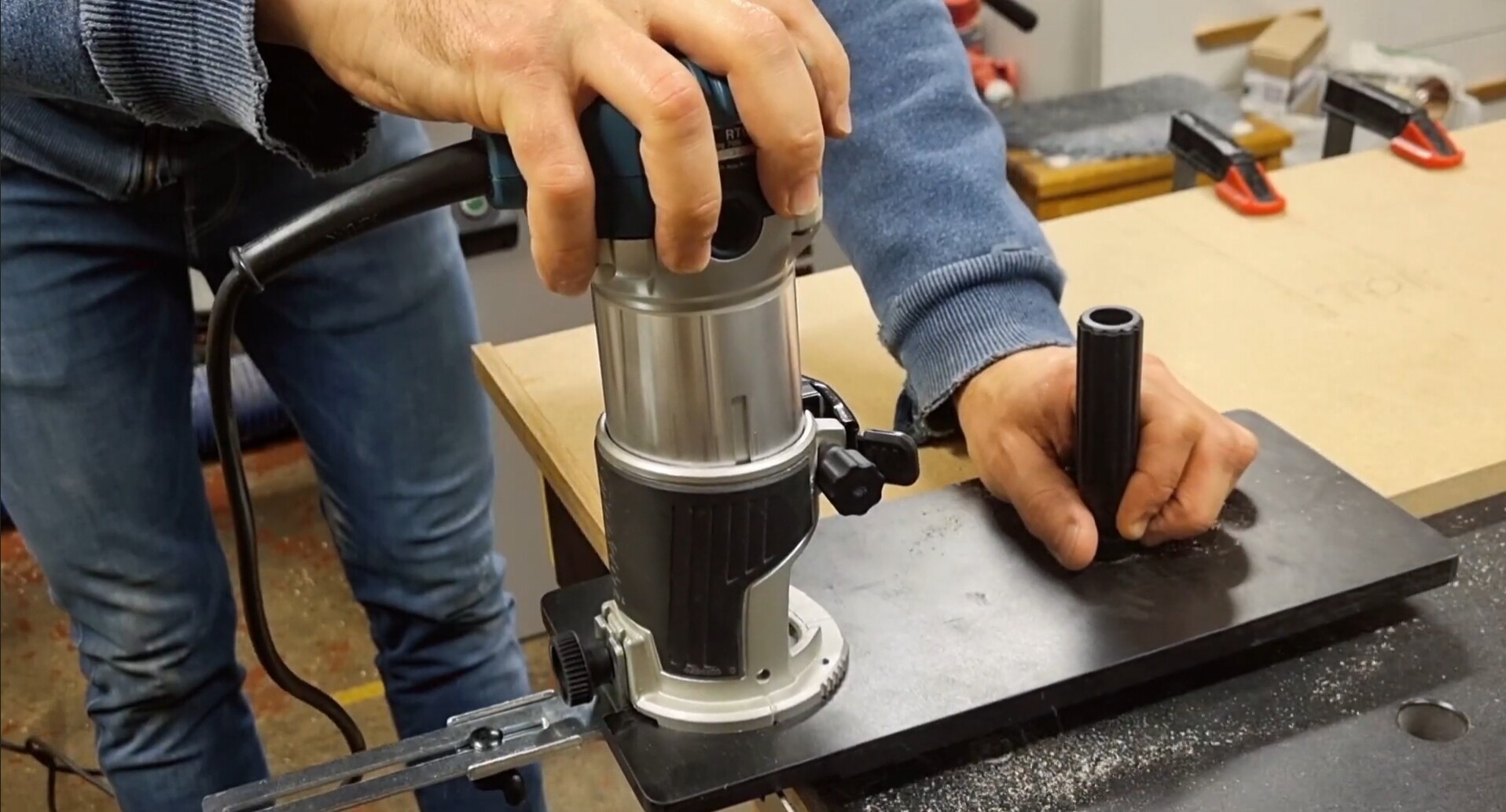 PS Woodpeckers har en nivåskillnad på ca tre mm mellan sulan och fräsplattans undre yta om man säger så, detta kopierar jag glatt vilket bör ge ytterligare skydd mot oönskade ”dipp”.