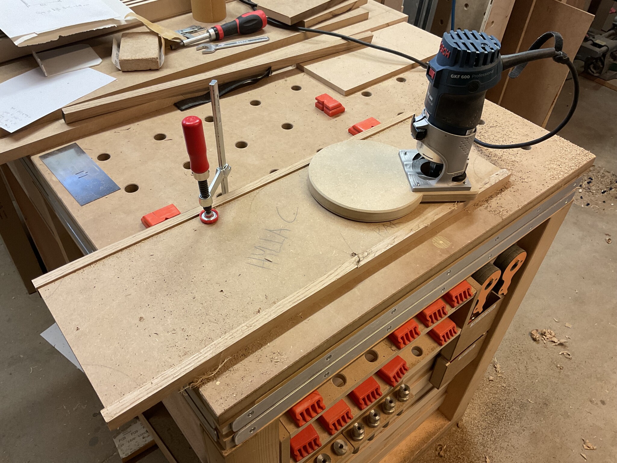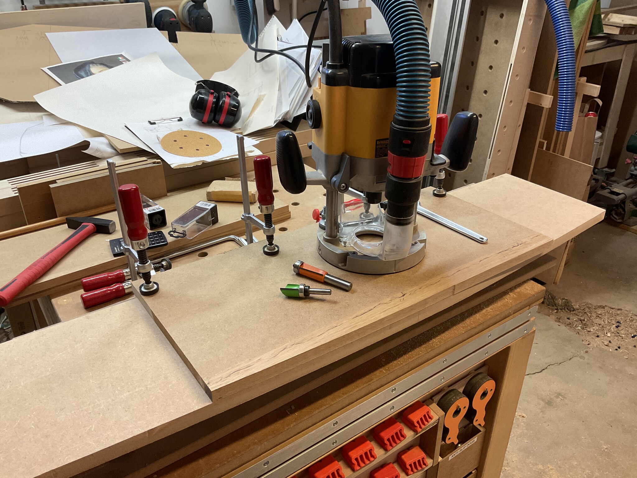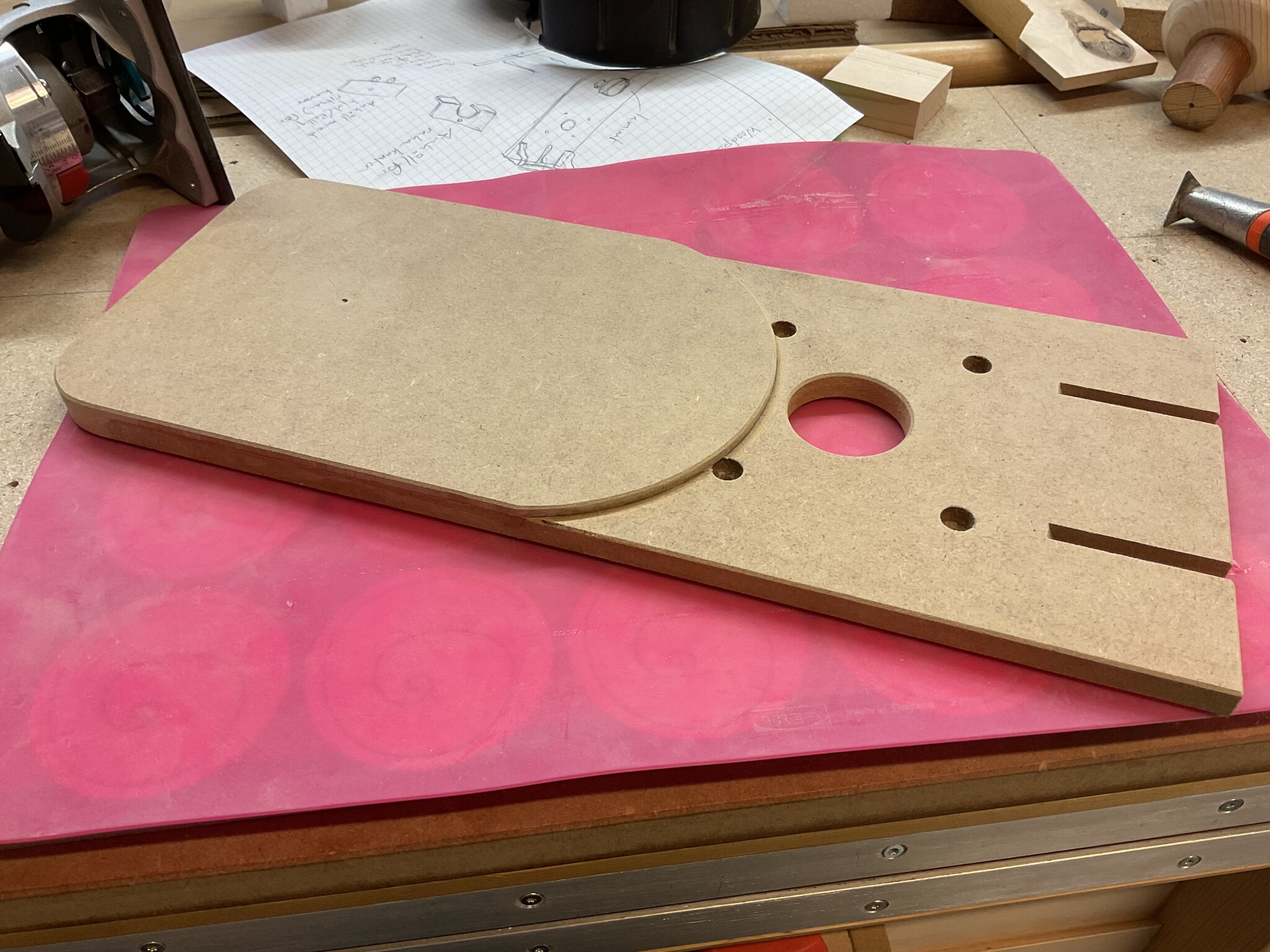 Utgick från tolv respektive fyra mm mdf, det senare som sula så att jag slapp fräsa en nivåskillnad på grunkan.