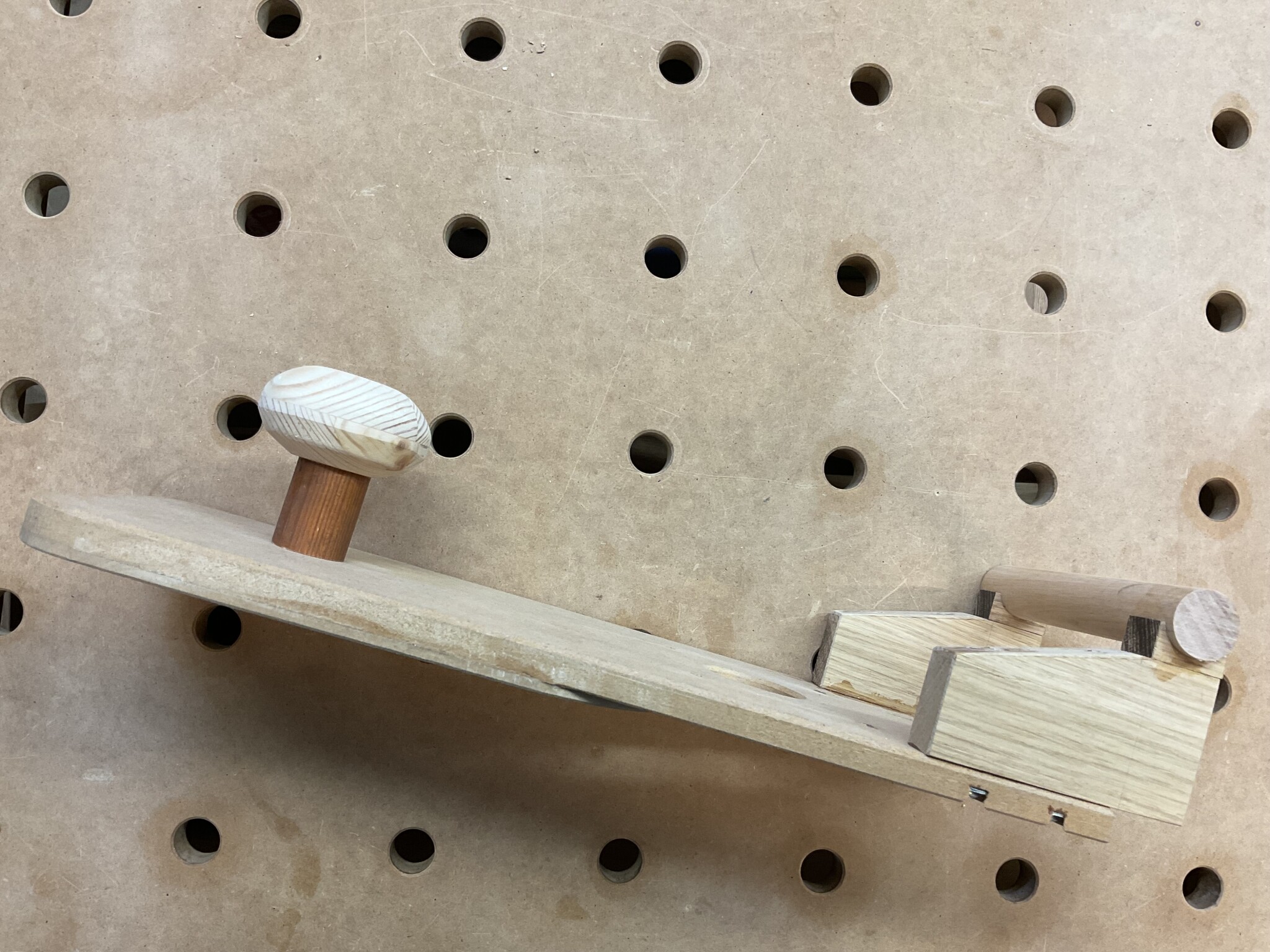 Utgick från lite plywoodspill, T-spårskruv från Axminster och knoppar från Hornbach och det blev såhär: