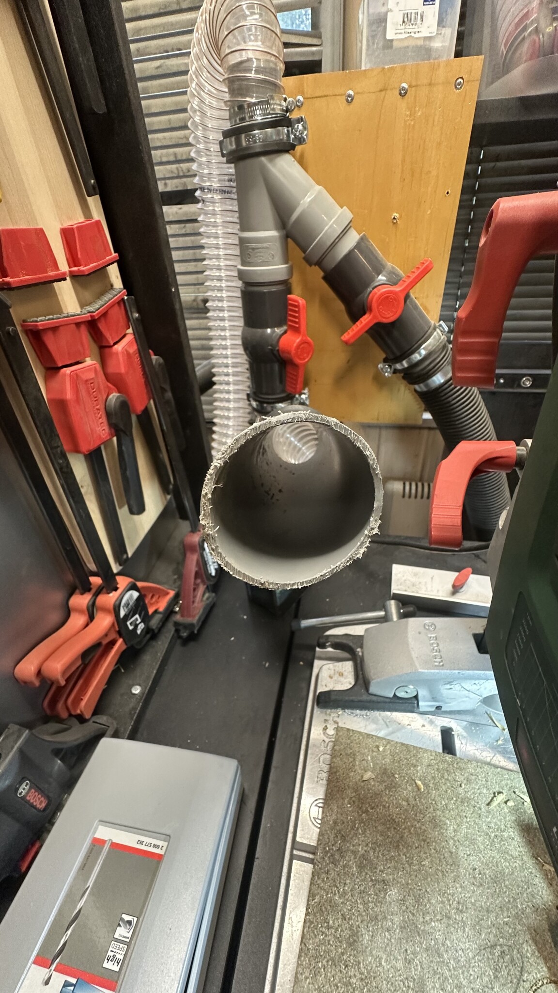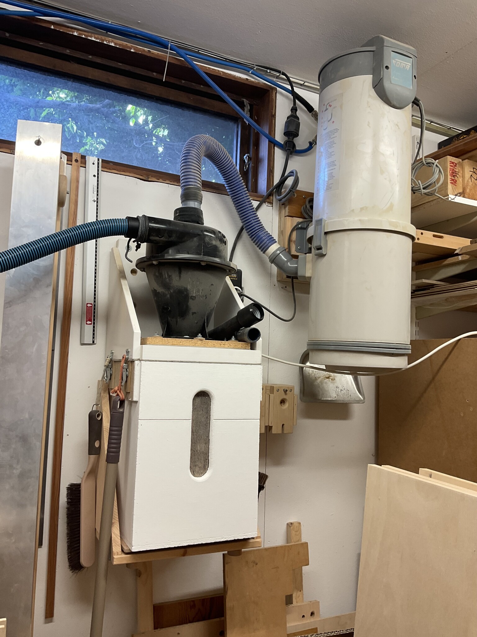 Har ju en centraldammsugare från Foma som jag kopplar mot min TS55, fräsar och slipar mm. Före den har det suttit en liten cyklon som jag fått från en generös forummedlem; den byttes såsmåningom mot en liknande från Quick click/Swedendro och sedan dess vet jag inte om jag ska vara nöjd eller inte. Tycker att suget blivit något sämre men har hittills bara haft subjektiva känslor att gå på.