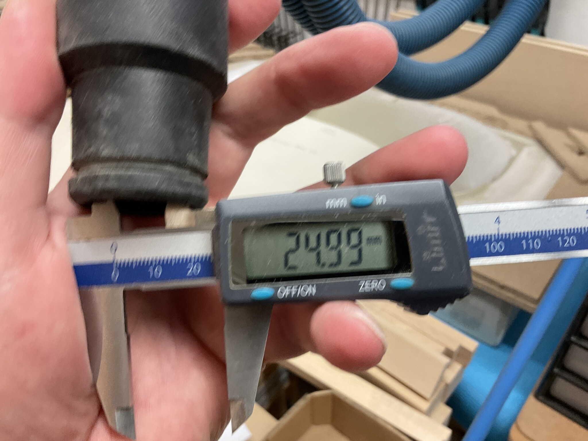 Nästa mätpunkt blir mellan slang och cyklon; kanske tänker jag fel här (fysik, matte och kemi var de ämnen jag alltid varit sämst i) men för att mäta utifrån samma förutsättningar (slangens mynningsdiameter) gjorde jag ett simpelt interface med ett hål i samma diameter som slangens mynning.