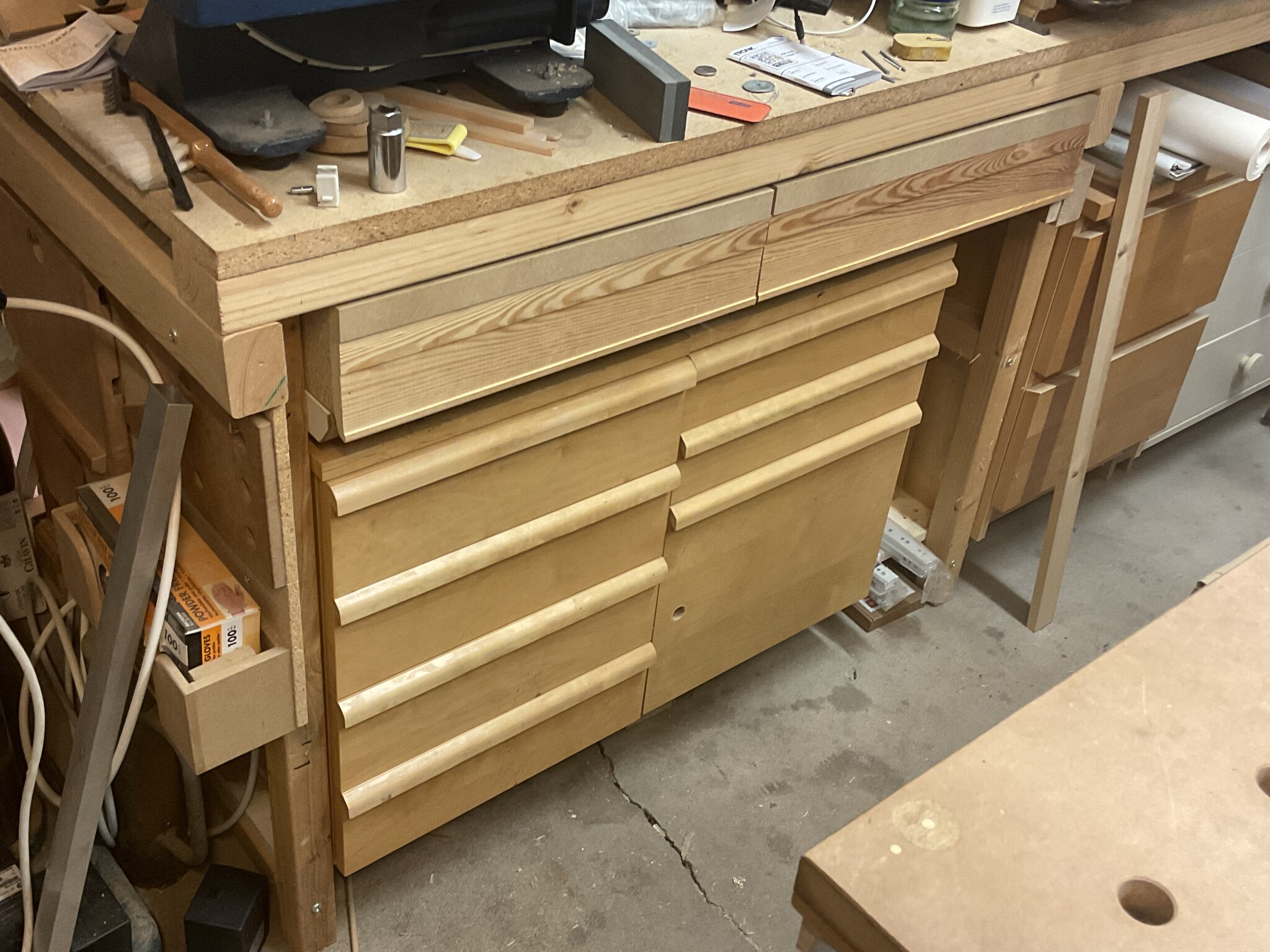 Har en avlastningsbänk med en massa bråte på, hur jag än försöker rensa den förblir den full av grunkor som är hemlösa. Under bänken har jag kontorshurtsar vilket innebar ett stort fall framåt och ovanför dem har det funnits ett tomrum som varit helt outnyttjat. Men inte längre!