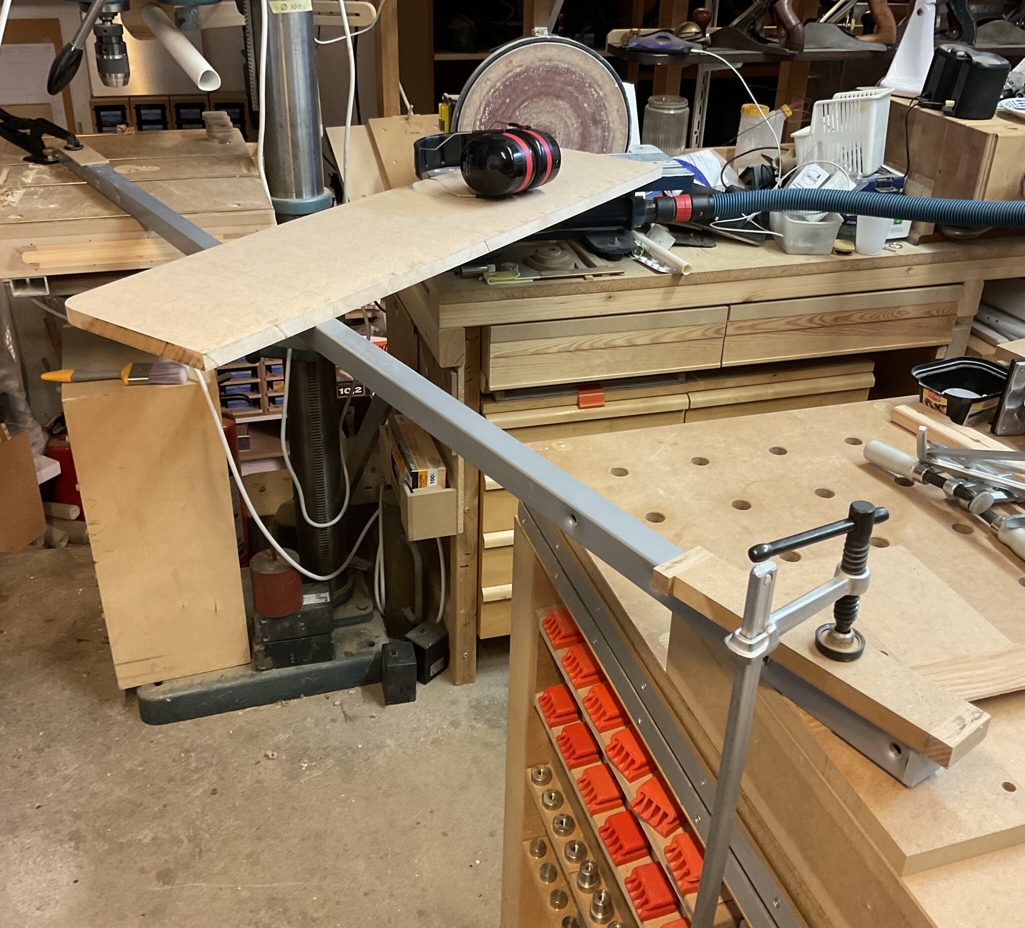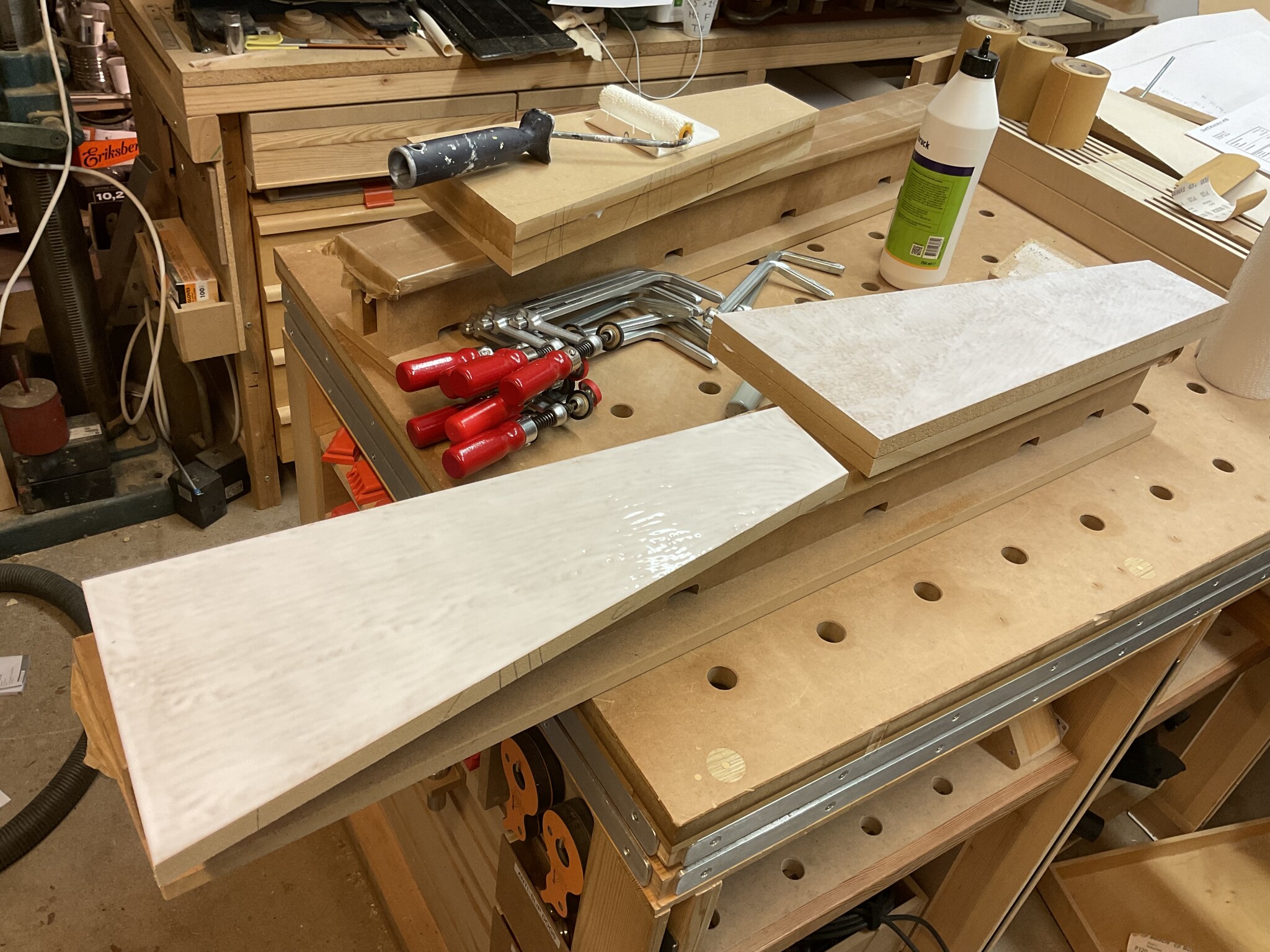 Limmar delarna mot en mfb (multifunktionsbalk 😜) eftersom skivan inte var helt plan vilket löser det problemet.