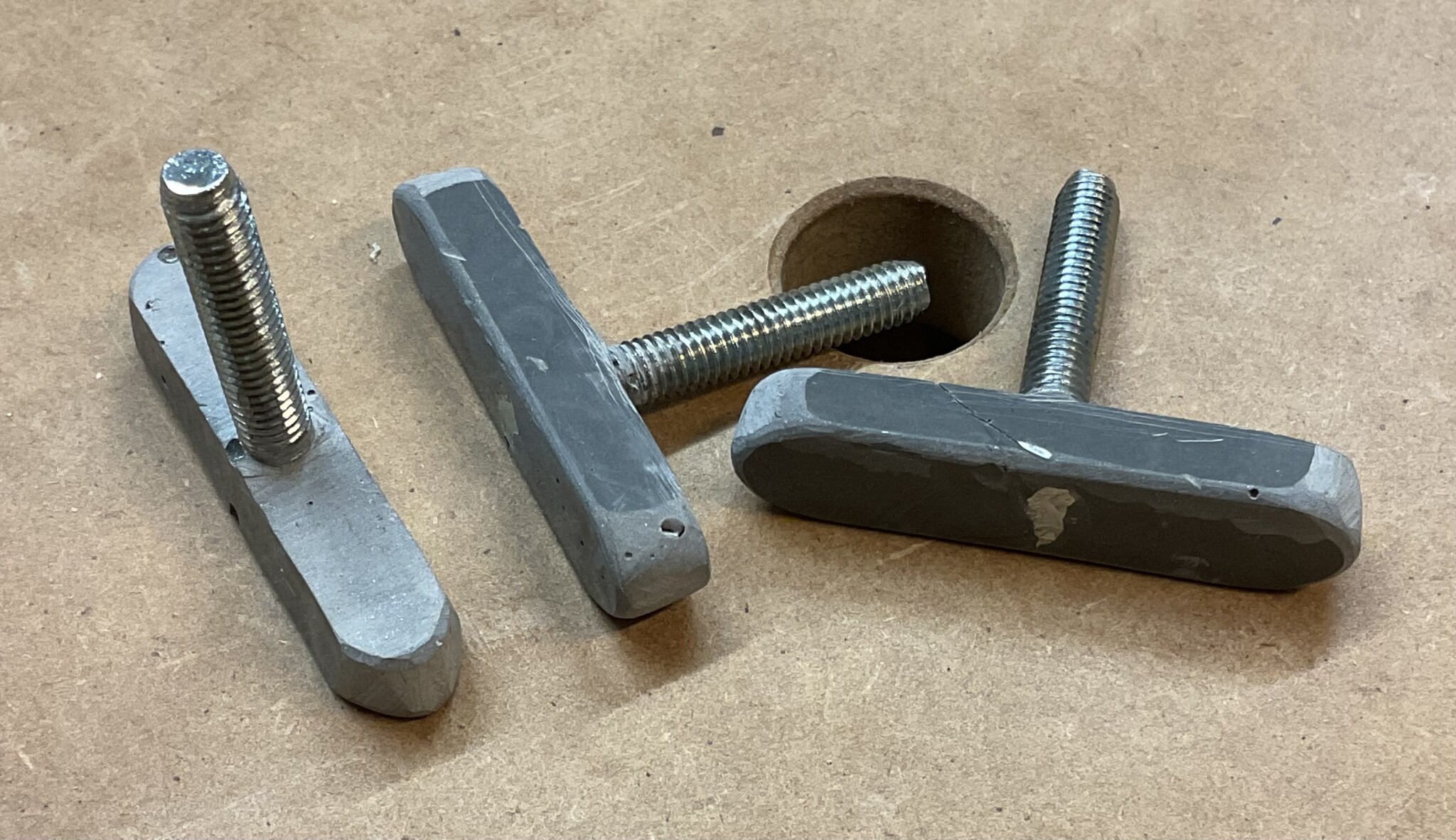 Tog några M6-skruv och misshandlade sexkantshuvudet på dem för att ge något för epoxin att greppa i och satte dem på plats i gjutformarna.