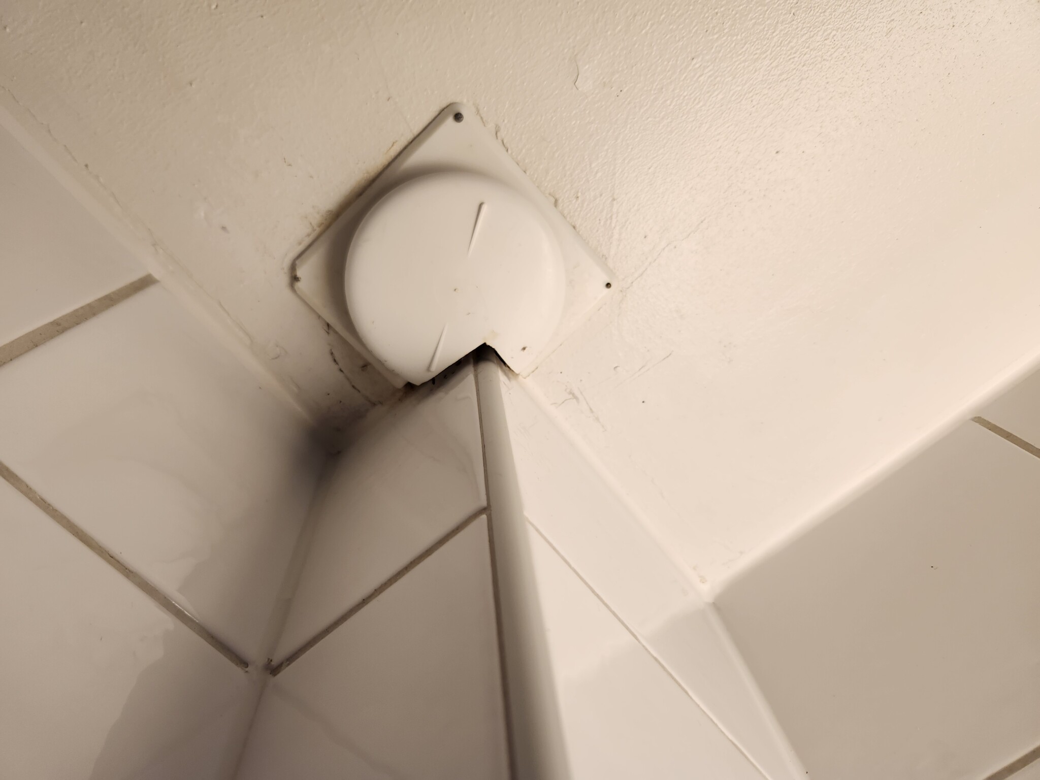 Toa (ej dusch eller badkar) på övervåningen har egen kanal till huv på tak så där skulle