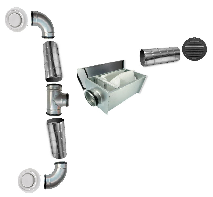 I ett sånt senario så tänker jag mig ett hål i gavlen, till en filterbox (pollenalergiker) som delas till 3 sovrum.
