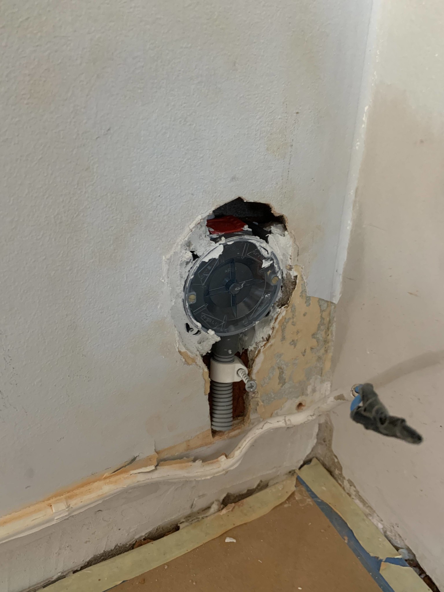 Tittar på att preppa för att en elektriker ska komma och dra lite el åt oss. Har tagit upp hål i väggen för flexslang som jag tänkte montera i anslutning till spårdosan ned till sockel där det är tänkt att utanpåliggande kabel ska komma in.