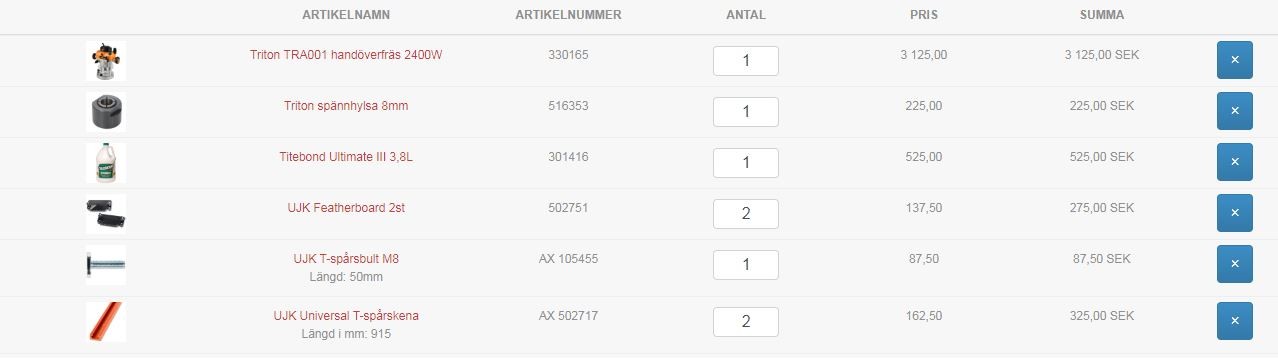 Kom på att jag har en småskakig film om mitt fräsbord (filmerna blev bättre efter inköp av stativ) där man ser bla hur snabbratten fungerar. Jag är väldigt nöjd med att INTE ha någon insatsplatta som fräsen skruvas i, riktigt najs att slippa ställa in den i höjd samt att slippa kanter som ämnet kan hugga på. Med Tritonfräsen finns ingen anledning att ha den sittande i en separat platta i bordet.
