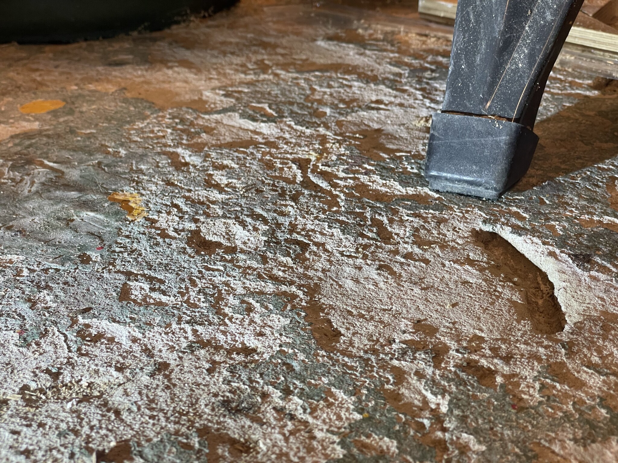 Jag har funderat på om det går att använda ”flytspackel”, men jag är osäker på om underlaget är lämpligt för det. Det finns stora hack och det verkar målat någon gång. Min stora rädsla är att ”flytspackel” börjar spricka och lossna.