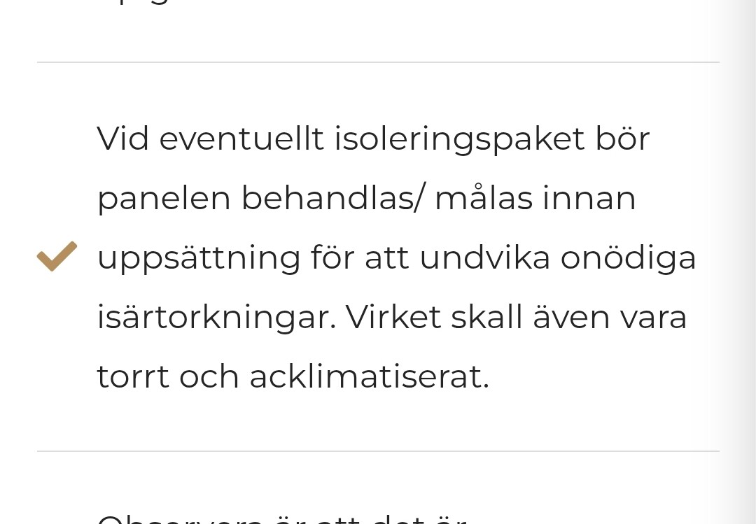 Bra poänger 👌Z z_bumbi skrev:Du bör måla panelen för annars syns det trärent när den torkar och rör sig. Det är både irriterande att det syns och så har panelen mindre skydd.