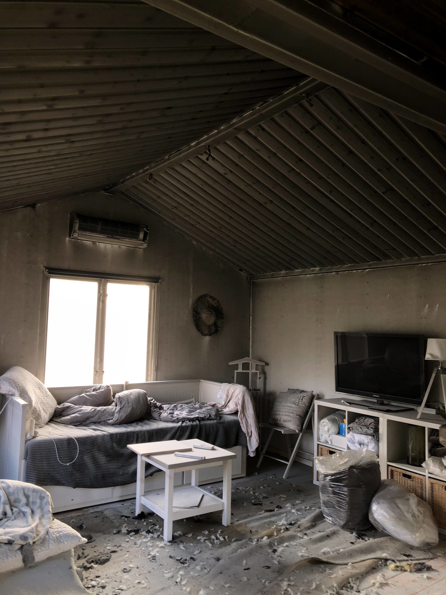 Den 27/10 brann det i mitt fritidshus (allt original sedan 60/70-talet). Två saneringsfirmor bedömde att det inte lönade sig att sanera men nya handläggaren på försäkringsbolaget säger nu att det räcker att byta ut innertaken och tvätta av och spärrmåla väggarna. Har ställt frågan om rök som tagit sig ner i golvbjälklag och väggar men han säger att det nog bara är taket. Tvärtemot vad saneringsfirmorna och brandmännen på plats sa. Hans ord gäller, inte saneringsfirmorna.