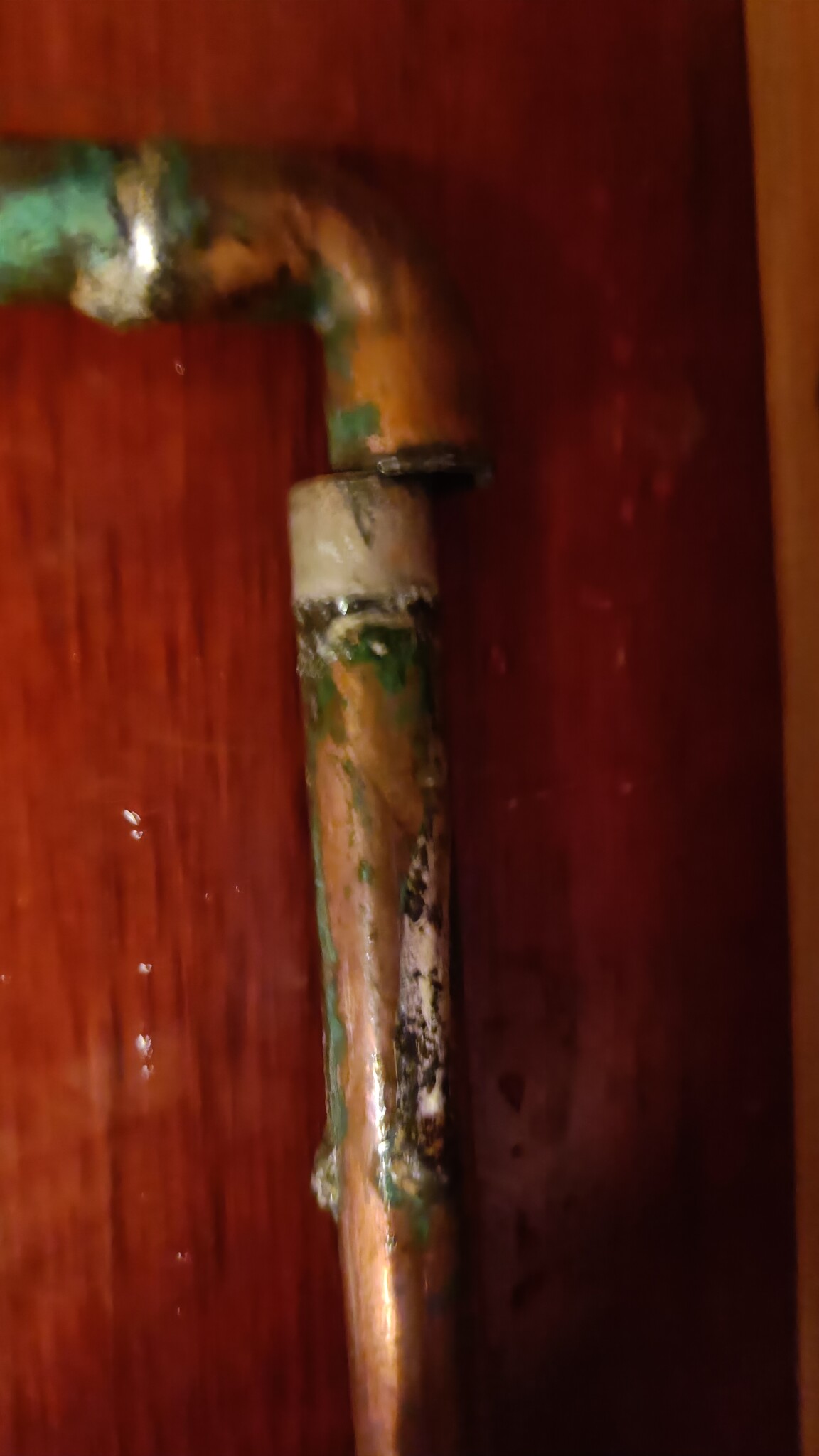 Rörmokaren har flyttat upp fördelarskåpet och skarvat kopparrören under
