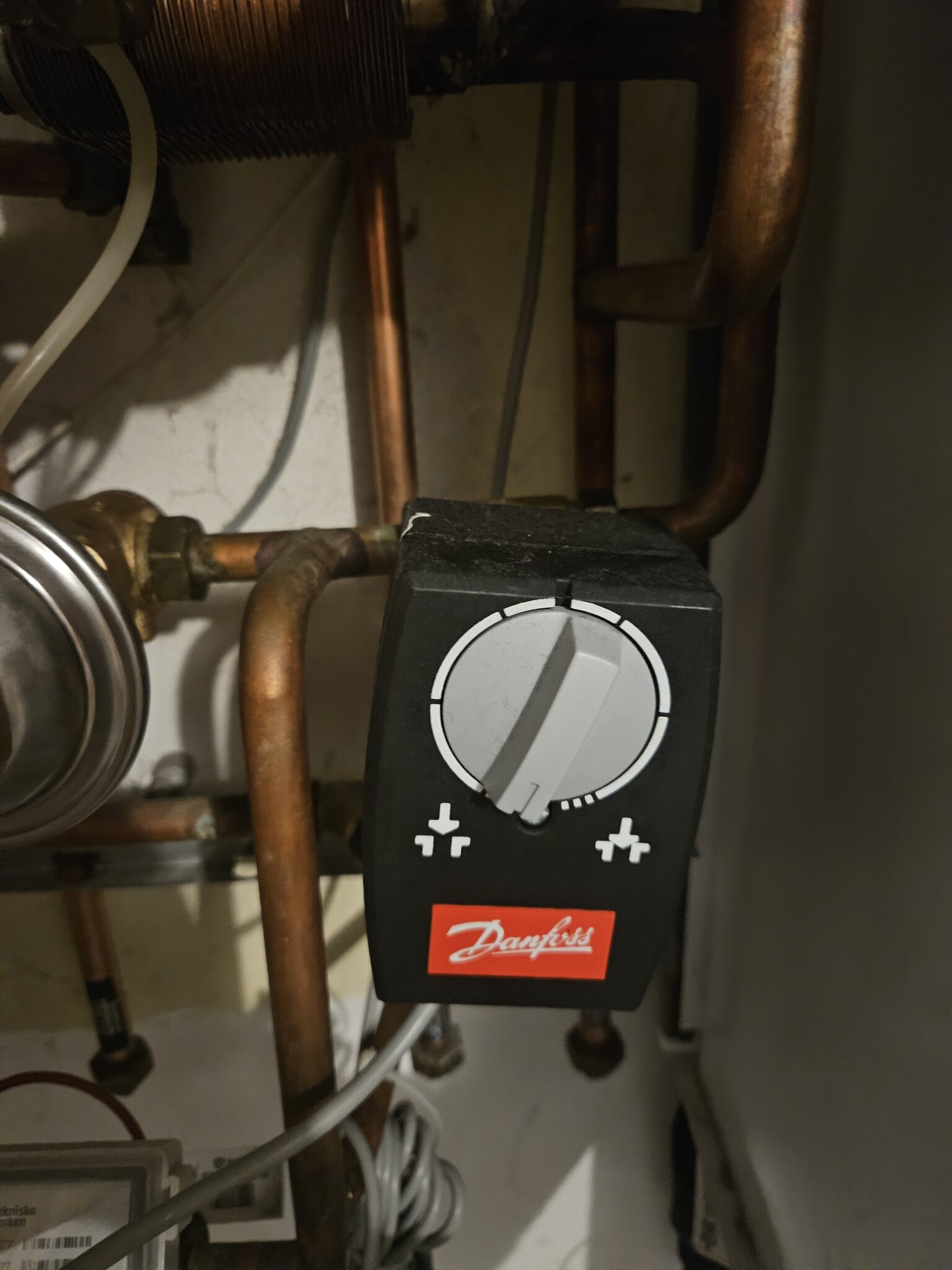 Ventilen i kopplingen under ställmotorn (Danfoss) kan fastna. Jag bytte precis ventil på min (likadana) anläggning. Knacka med en skruvmejsel på T-kopplingen vid ventilmotorn och se om den lossnar. Det som talar emot är ju dock att du säger att det funkade för en vecka sedan.... Du kan även skruva bort ventilmotorn (nej, det sprutar inte vatten) och kontrollera att stiftet röra sig när du trycker med en platt-mejsel på det
