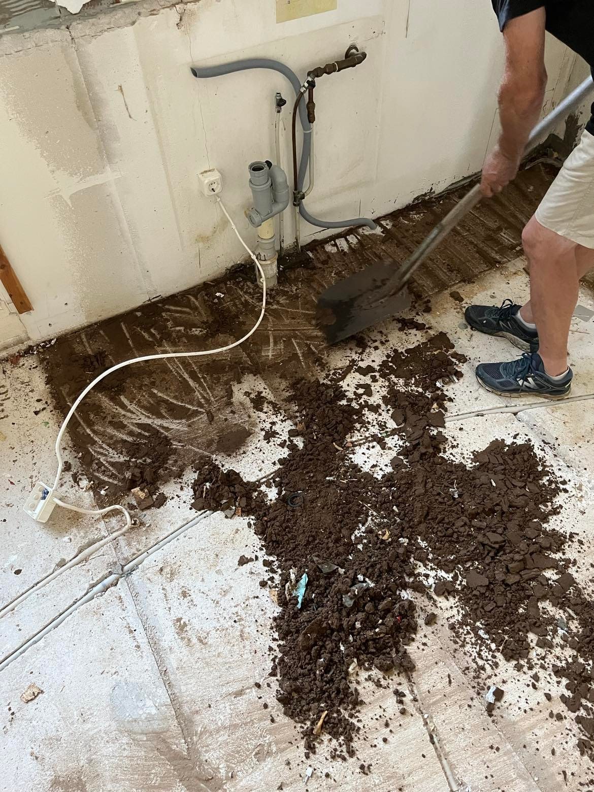 Lyfte även på golvet i köket som ligger rakt ovanför och märkte att sanden som ligger mellan golv och betonggolv var blöt.m