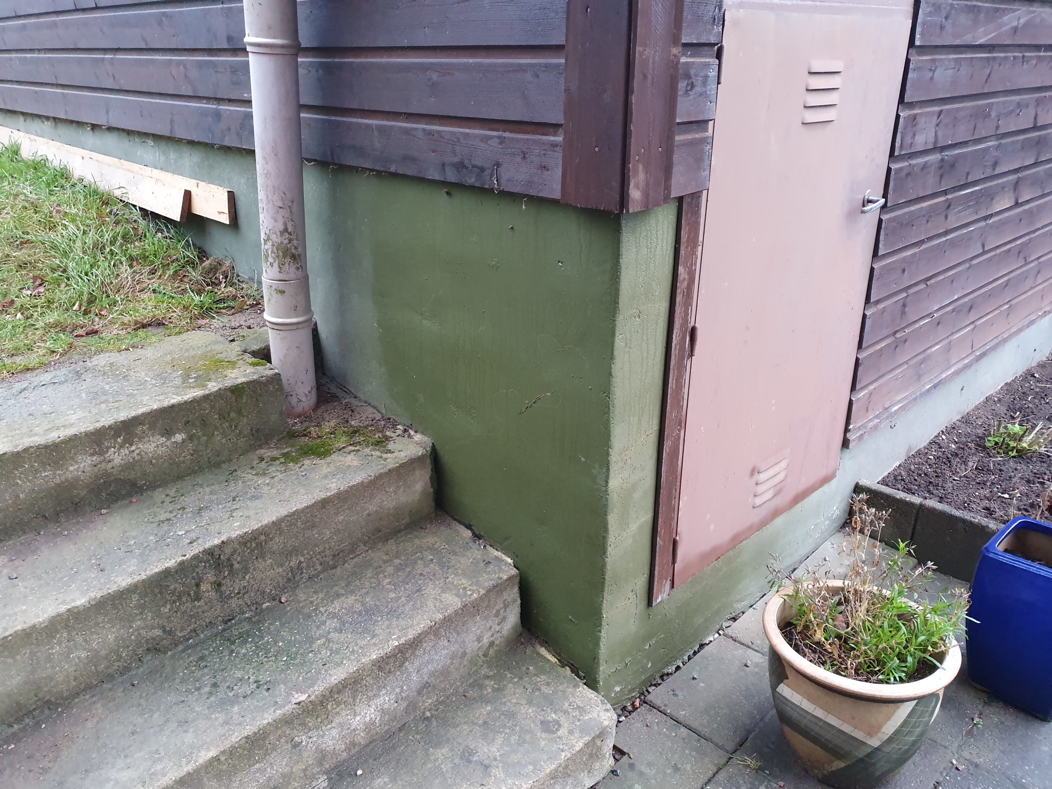 Plus att garaget (på andra sidan trappen på bilderna) är fuktigt på ena knuten. Garaget håller ca 10 grader men just i den hörnan är det soprum innanför.
