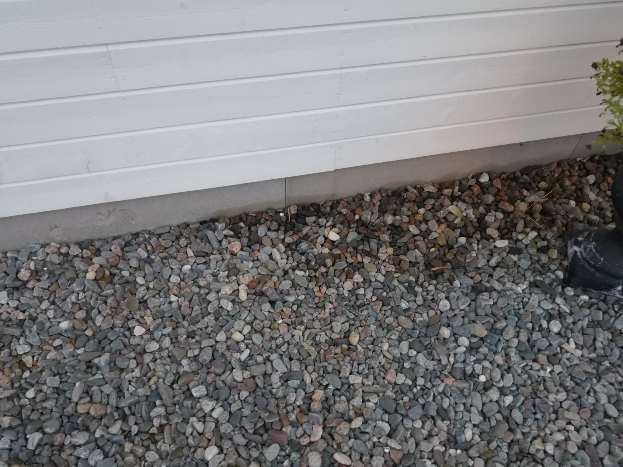 Någon som vet vad detta betyder? Kantelementet är vått om man tittar bakom gruset, även gruset intill är vått. Inget regn helt nyligen. Det är gjuten platta med golvvärme, men vatten är inte indraget i huset än, så det kan inte vara vattenläckage inifrån. Kan det vara dålig dränering? Borde det inte torka efter ett tag om det inte regnar?